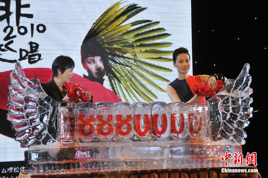 7月19日,王菲演唱會舉行發(fā)布會。淡出歌壇五年的天后王菲身穿紅黑色“八卦裙”現(xiàn)身,盡顯高貴氣質(zhì)。中新網(wǎng)記者 田博川 攝