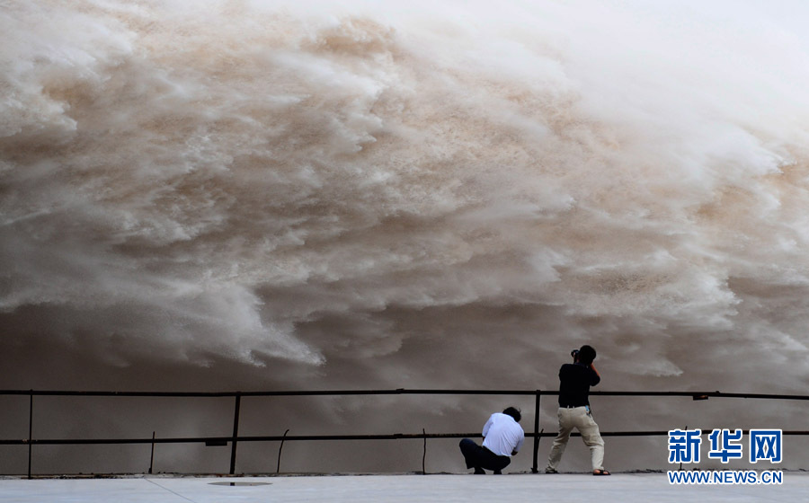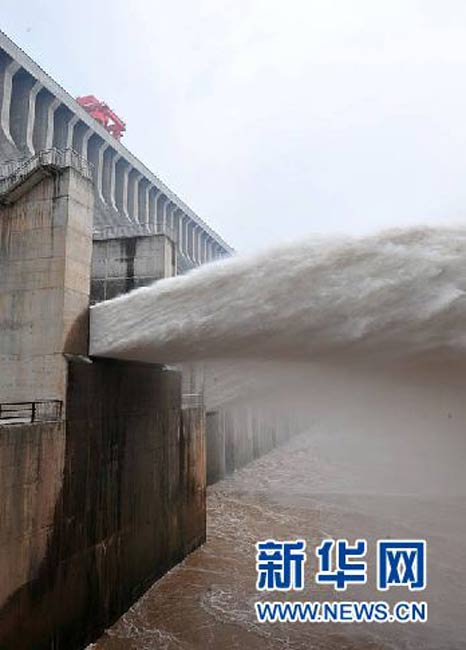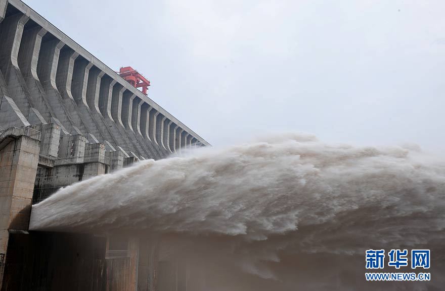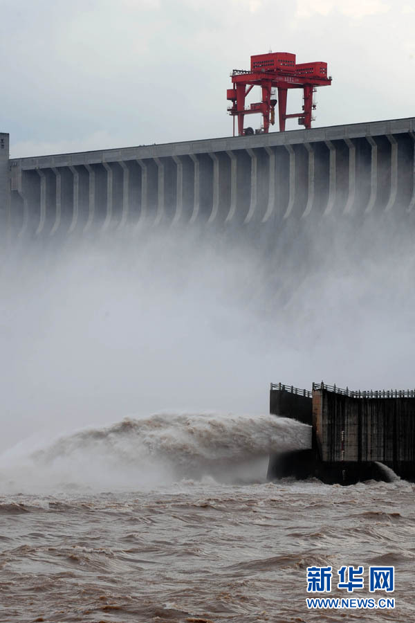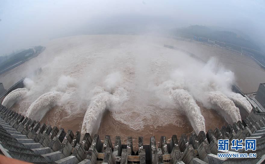 7月19日,三峽大壩開啟6個泄洪深孔和一個排漂孔泄洪。當日上午8時,三峽水庫入庫流量增至58000立方米/秒,再創(chuàng)今年入汛以來新高。長江三峽集團公司目前正按長江防總最新調(diào)度令,從19日10時起,再度加大泄洪力度,將出庫流量調(diào)高到40000立方米/秒,積極迎戰(zhàn)建庫以來的最大洪峰。據(jù)長江水文局最新預報,長江上游正在形成一場大洪水,洪峰流量將逼近70000立方米/秒。 鄭家裕 攝(圖片來源:新華網(wǎng))