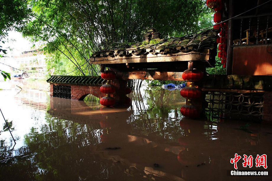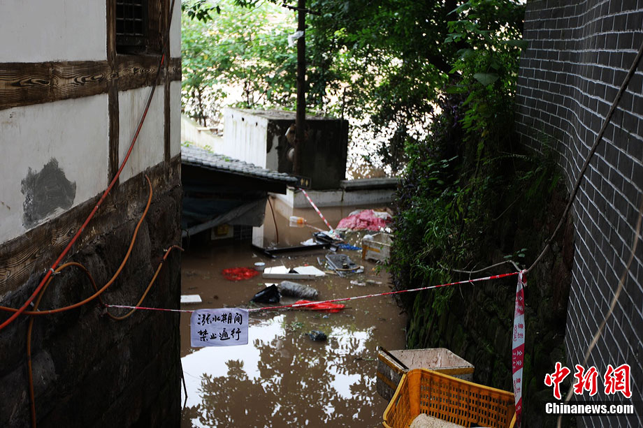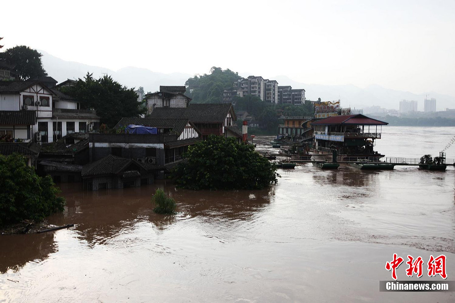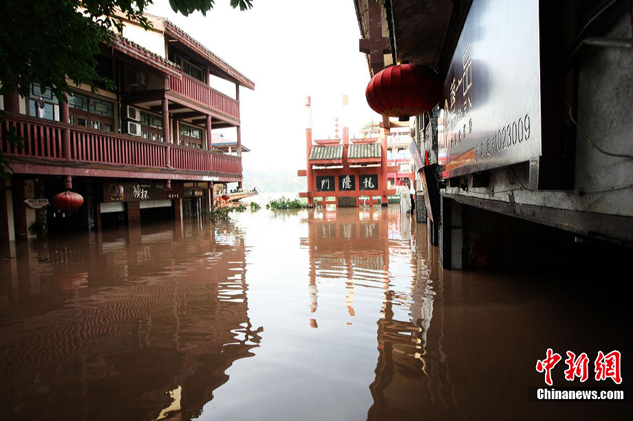 7月19日,今年入汛以來(lái)最大洪峰經(jīng)過(guò)重慶主城,長(zhǎng)江、嘉陵江水位上漲。記者在重慶古鎮(zhèn)磁器口看到,從磁器口江邊至磁器口街道的梯坎已“隱”于水面下,標(biāo)志性牌匾龍隱門(mén)沒(méi)至“腰部”,靠近江邊的商鋪及民居被淹。目前,大部分商家、市民接預(yù)警已提前撤場(chǎng)歇業(yè)或撤離至安全地帶。截至記者趕赴磁器口途中,部分必經(jīng)路段已實(shí)施交通管制,磁器口正街漲水期間亦采取禁行措施。據(jù)長(zhǎng)江水利委員會(huì)水文局監(jiān)測(cè)數(shù)據(jù),19日20時(shí)長(zhǎng)江重慶寸灘站水位超過(guò)185米,這是重慶遭遇的長(zhǎng)江今年以來(lái)最大洪峰。截至20日0時(shí),長(zhǎng)江重慶水位仍在185.06米的峰值上流動(dòng),洪峰仍在過(guò)境重慶。 劉函冉 攝