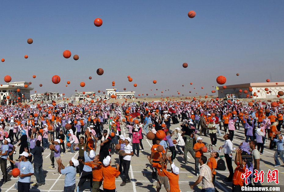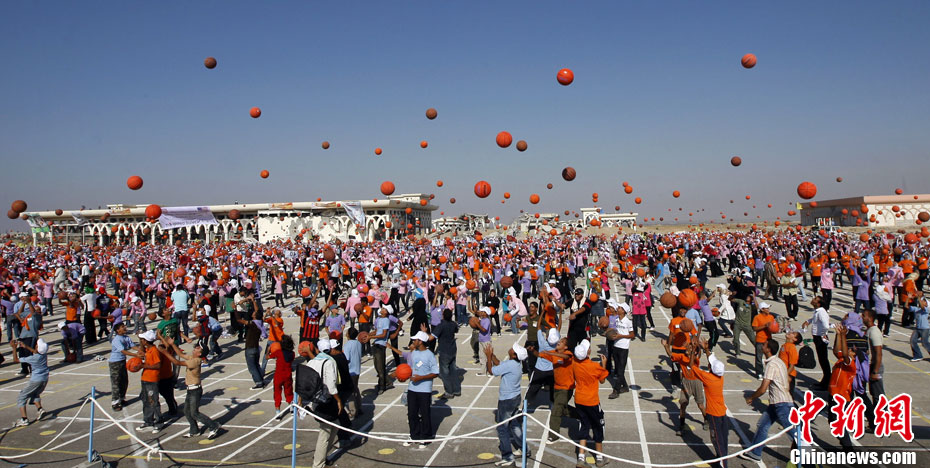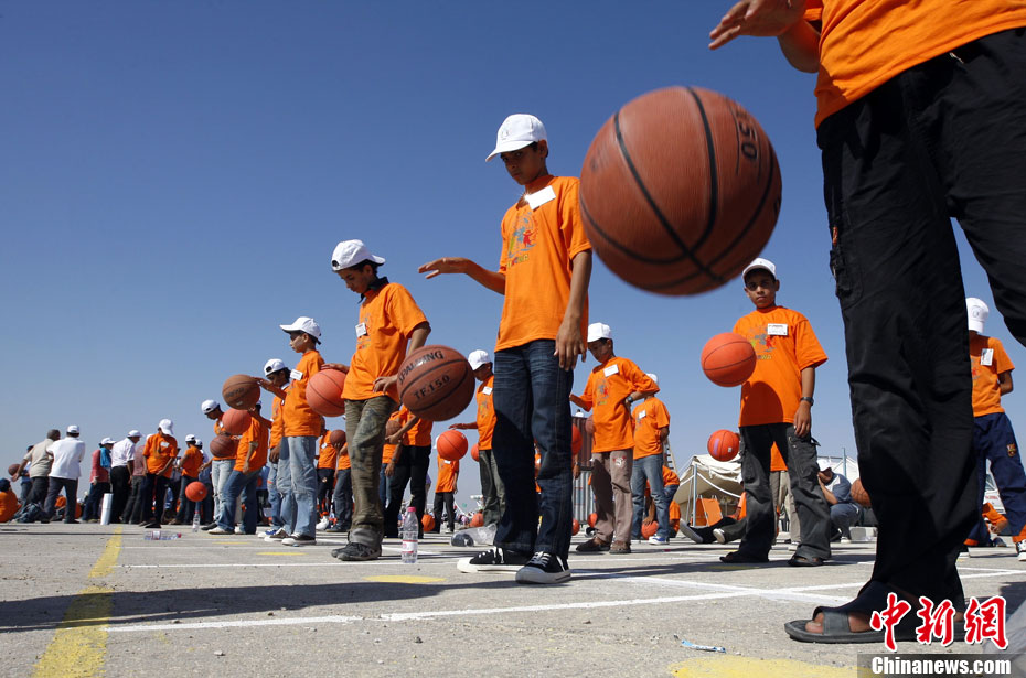 7月22日,加沙地帶7500名巴勒斯坦兒童刷新了最多人在同一地點同時拍籃球的吉尼斯世界紀(jì)錄。當(dāng)日,這些兒童在聯(lián)合國近東巴勒斯坦難民救濟和工程處駐加沙地帶辦事處的組織下,來到加沙地帶南部一個遭以色列轟炸后廢棄的機場!伴_始”的口令一發(fā)出,站成方隊的7500名兒童用單手同時拍起了籃球,連續(xù)進行了5分鐘,創(chuàng)造了最多人在同一時間、同一地點拍籃球的吉尼斯世界紀(jì)錄。此前,此項紀(jì)錄由美國以4600多人保持。