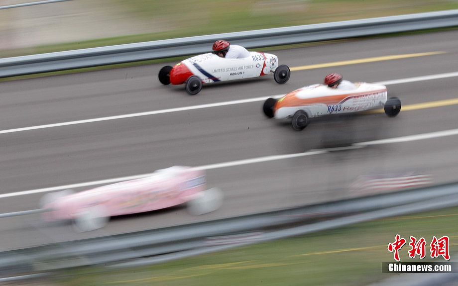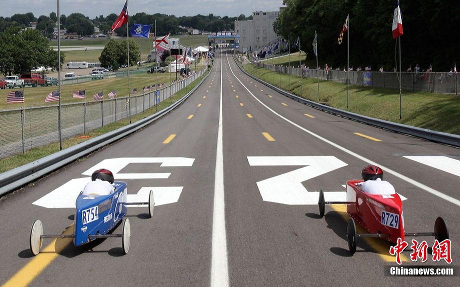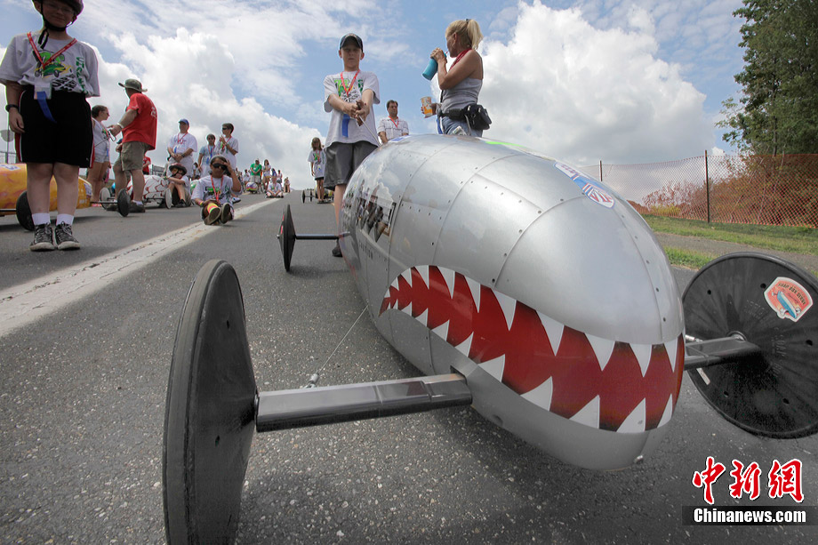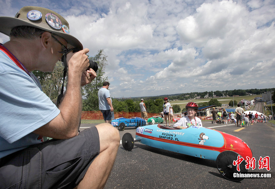 當(dāng)?shù)貢r間7月21日,美國俄亥俄州舉行了第73屆全美“肥皂盒”小車大賽。來自美國各地以及加拿大、日本、德國和新西蘭的約500名車手?jǐn)y帶自己的愛車參賽。“肥皂盒”小車沒有任何動力裝置,其主要設(shè)計目標(biāo)是減少空氣阻力和摩擦力,以便讓小車的速度達到最高。