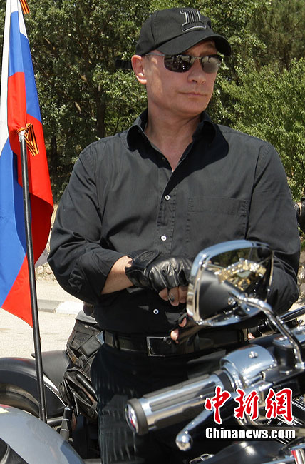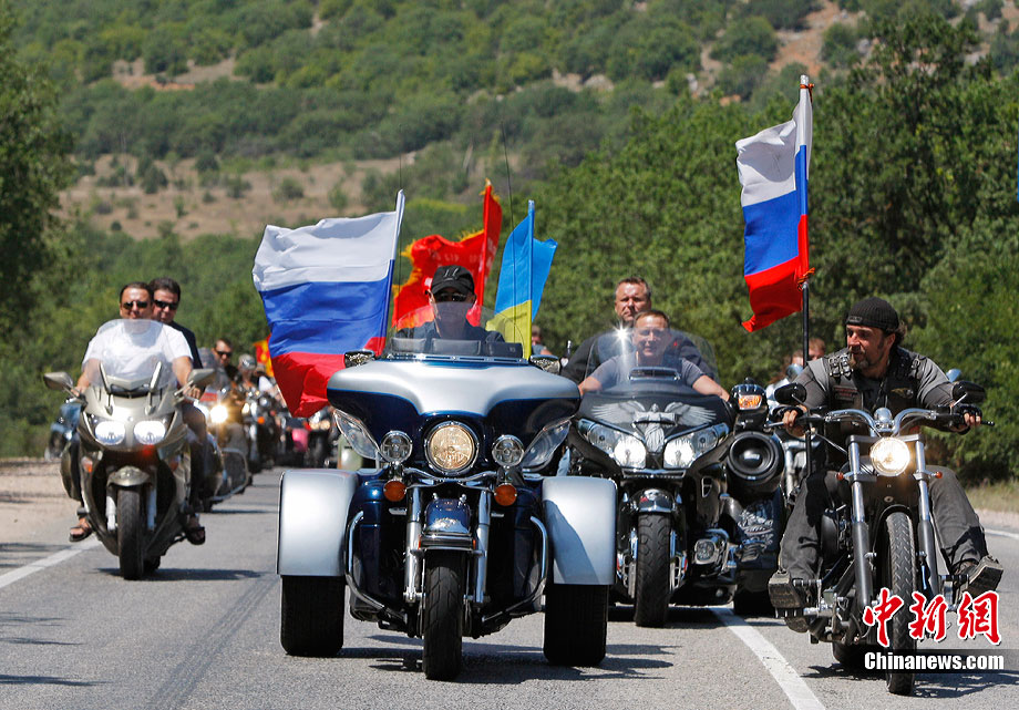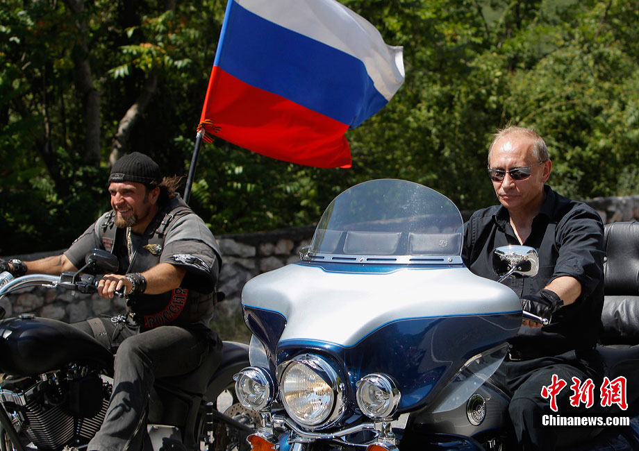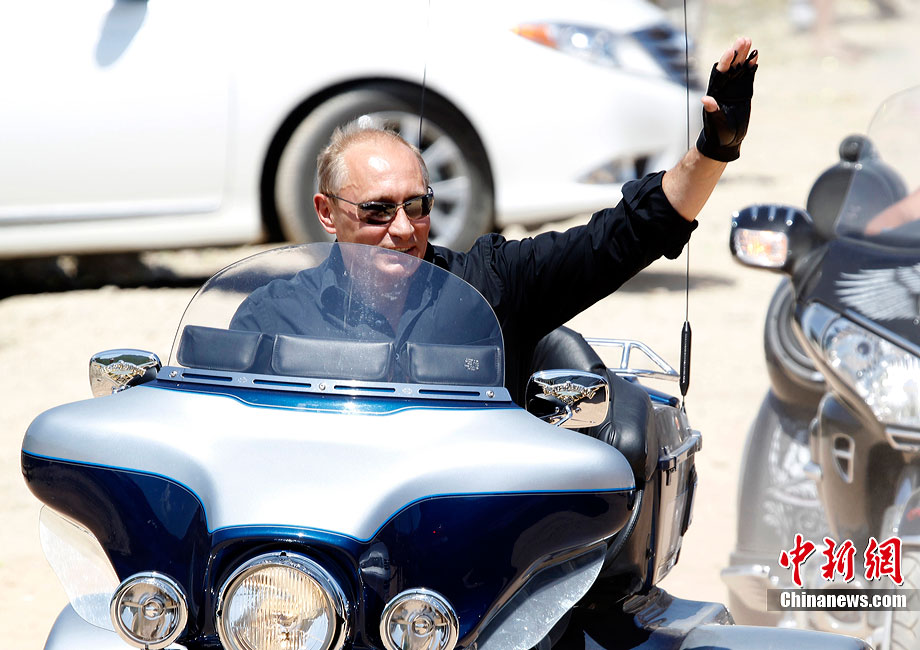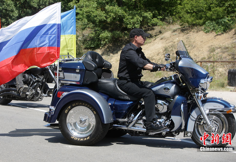當(dāng)?shù)貢r(shí)間7月24日,在烏克蘭塞瓦斯托波爾,俄羅斯總理普京駕駛一輛哈雷摩托車前往一個(gè)俄羅斯和烏克蘭摩托車愛好者的聚會(huì)營(yíng)地參加活動(dòng)。