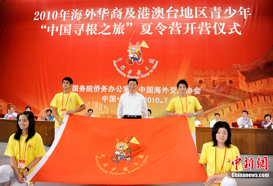 7月25日,海外華裔及港澳臺地區(qū)青少年“中國尋根之旅”夏令營開營儀式在北京人民大會堂舉行,中共中央政治局常委、國家副主席習(xí)近平向參加夏令營的青少年授旗。此次夏令營為歷屆規(guī)格最高、規(guī)模最大的一次,共有來自世界51個國家和港澳臺地區(qū)的6000余名華裔青少年參加。該夏令營由國務(wù)院僑務(wù)辦公室和中國海外交流協(xié)會舉辦。中新社發(fā) 廖攀 攝