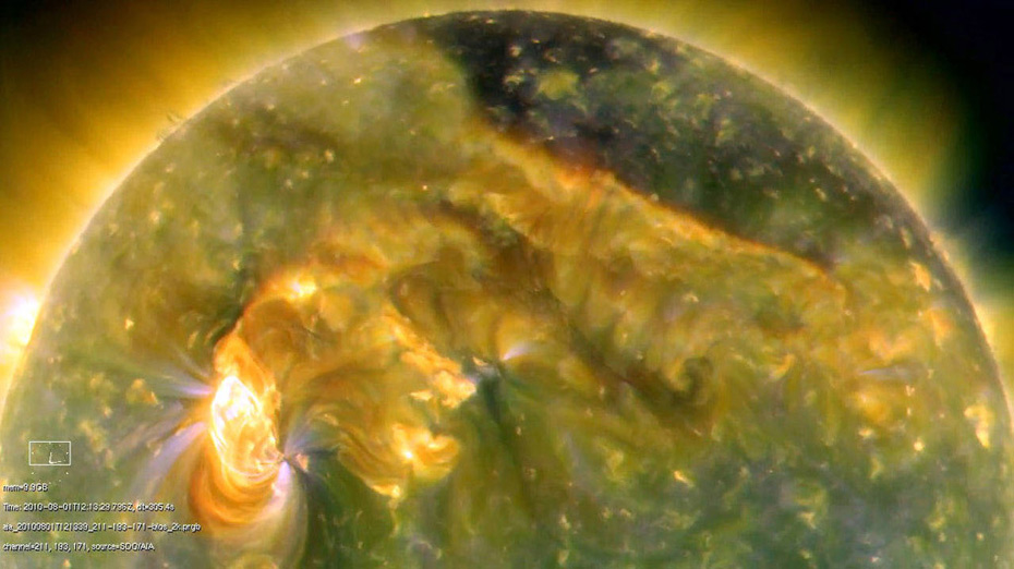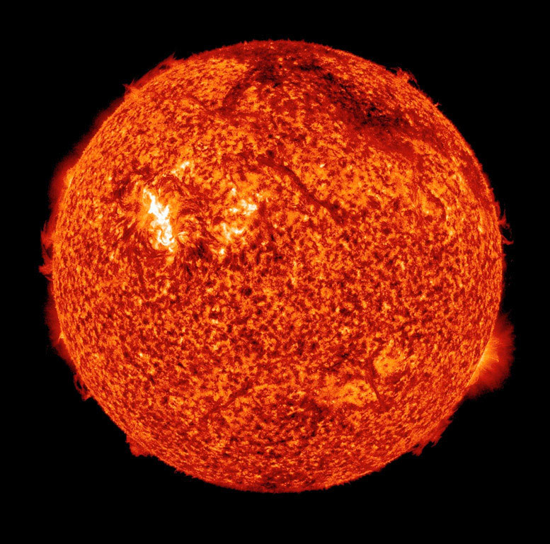 據(jù)英國媒體2日報道,各國天文臺近日觀測到太陽表面發(fā)生劇烈的太陽風(fēng)暴,科學(xué)家預(yù)測,攜帶大量帶電粒子的太陽風(fēng)預(yù)計于4日抵達(dá)地球,在兩極產(chǎn)生強(qiáng)烈的極光現(xiàn)象。圖為8月3日,NASA公布了太陽動力學(xué)觀測衛(wèi)星(SDO)1日通過極紫外線相機(jī)拍攝到的太陽北半球耀斑爆發(fā),耀斑下的太陽黑子足有地球大小。(NASA圖)