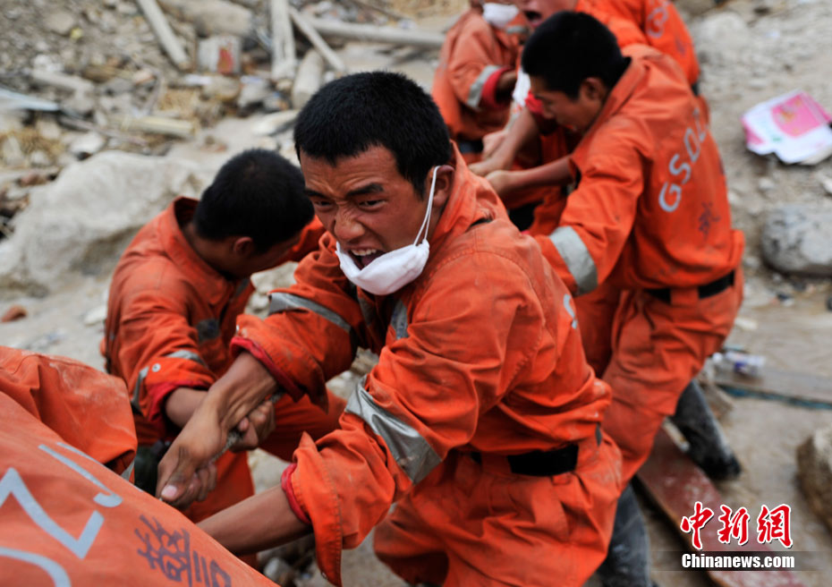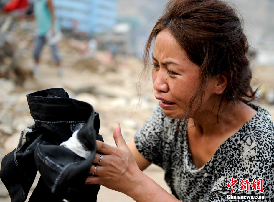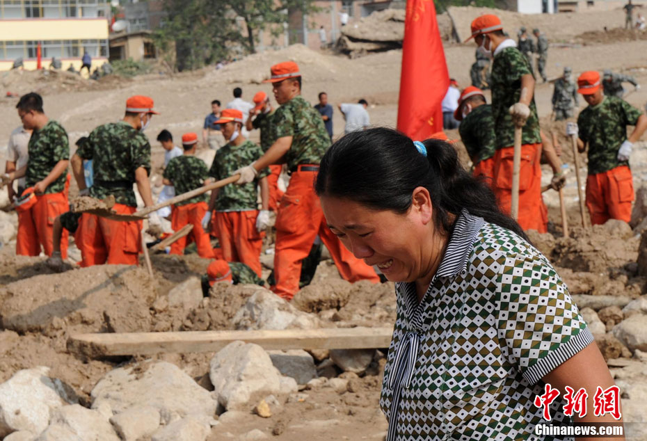2010年8月11日,甘肅舟曲縣發(fā)生特大泥石流災(zāi)害后的第四天,目前救援工作仍在繼續(xù)。截至10日17時(shí),泥石流災(zāi)害死亡人數(shù)已達(dá)702人,失蹤人員1042人,42人重傷。中新網(wǎng)記者 金碩 攝