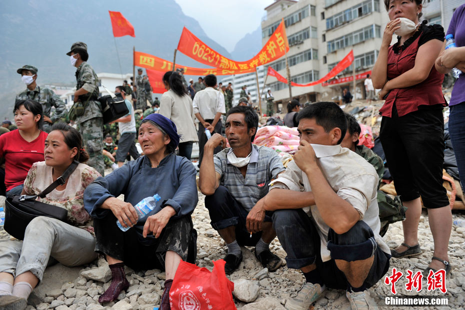 2010年8月11日,甘肅舟曲縣發(fā)生特大泥石流災(zāi)害后的第四天,救援工作仍在繼續(xù)。截至10日17時,泥石流災(zāi)害死亡人數(shù)已達(dá)702人,失蹤人員1042人,42人重傷。隨著救援工作的緊張進(jìn)行,許多受災(zāi)民眾在自己的家園附近苦苦守望,希望親人奇跡生還,希望給逝者最后的尊嚴(yán)。中新網(wǎng)記者 金碩 攝