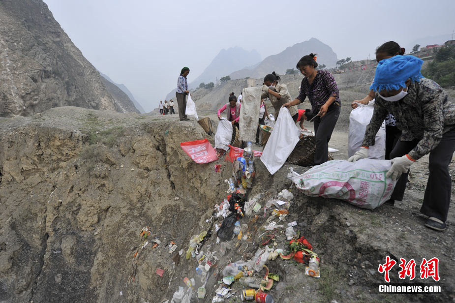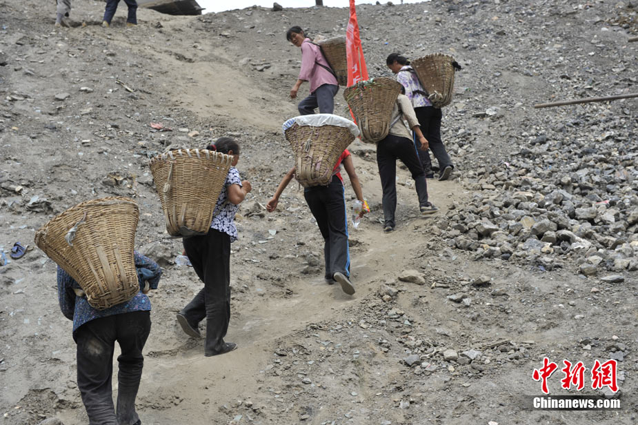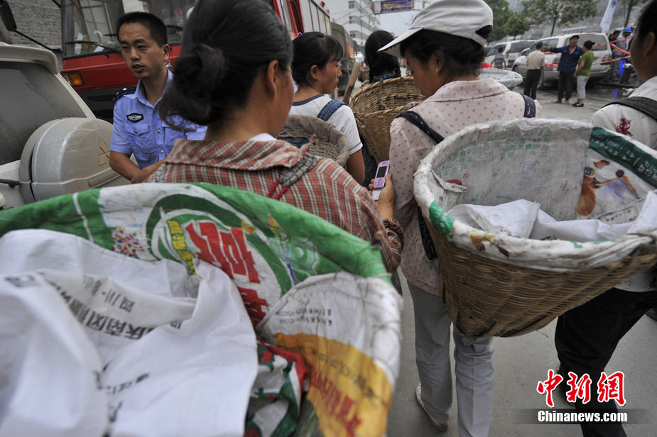 從早上8點(diǎn)到12點(diǎn),一上午這支“突擊隊(duì)”來(lái)回四趟,天氣炎熱,雖然對(duì)地形非常熟悉,她們休息的次數(shù)越來(lái)越多,步子也慢了起來(lái)。休息間歇,記者問(wèn)起,這次清運(yùn)垃圾政府會(huì)不會(huì)給些工資,大家都笑而不語(yǔ)!敖o不給錢(qián)無(wú)所謂,發(fā)生這么大的事情,幫點(diǎn)忙也是應(yīng)該的!眹(yán)鄺條對(duì)記者說(shuō)。