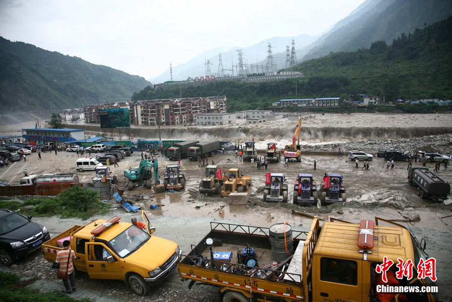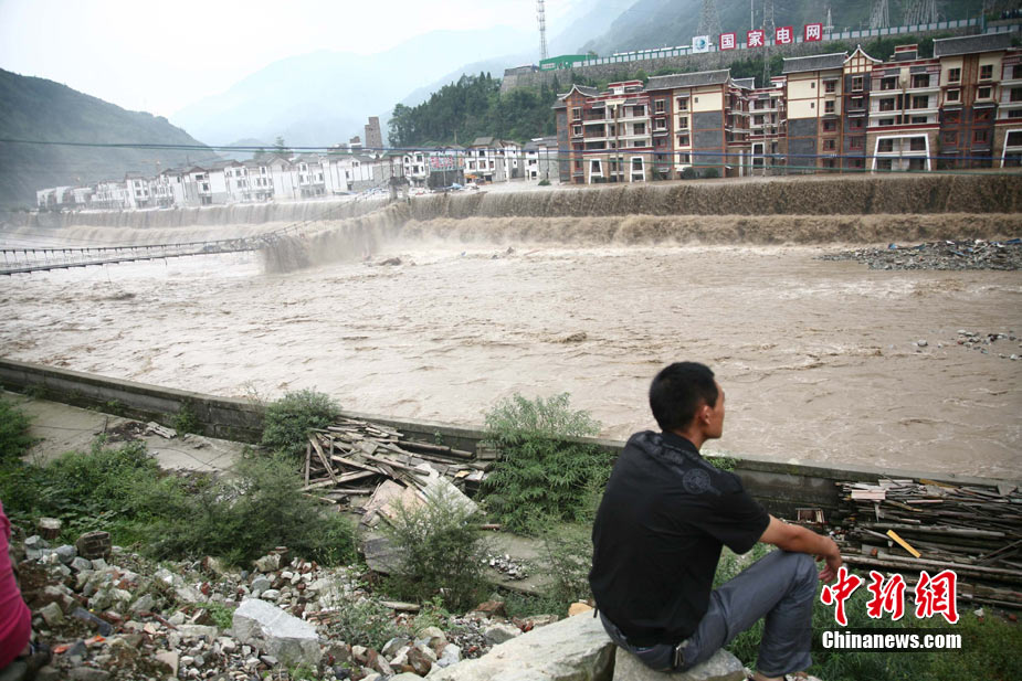 8月14日凌晨,連續(xù)強(qiáng)降雨引發(fā)汶川境內(nèi)映秀鎮(zhèn)、漩口鎮(zhèn)、銀杏鄉(xiāng)、三江鄉(xiāng)等鄉(xiāng)鎮(zhèn)發(fā)生多處泥石流災(zāi)害。其中銀杏鄉(xiāng)境內(nèi)泥石流塌方量高達(dá)6萬(wàn)立方米,流經(jīng)該鄉(xiāng)的岷江也因泥石流阻斷,正在形成堰塞湖;映秀鎮(zhèn)板房醫(yī)院被泥石流沖毀。中新社發(fā) 薛升玉 攝