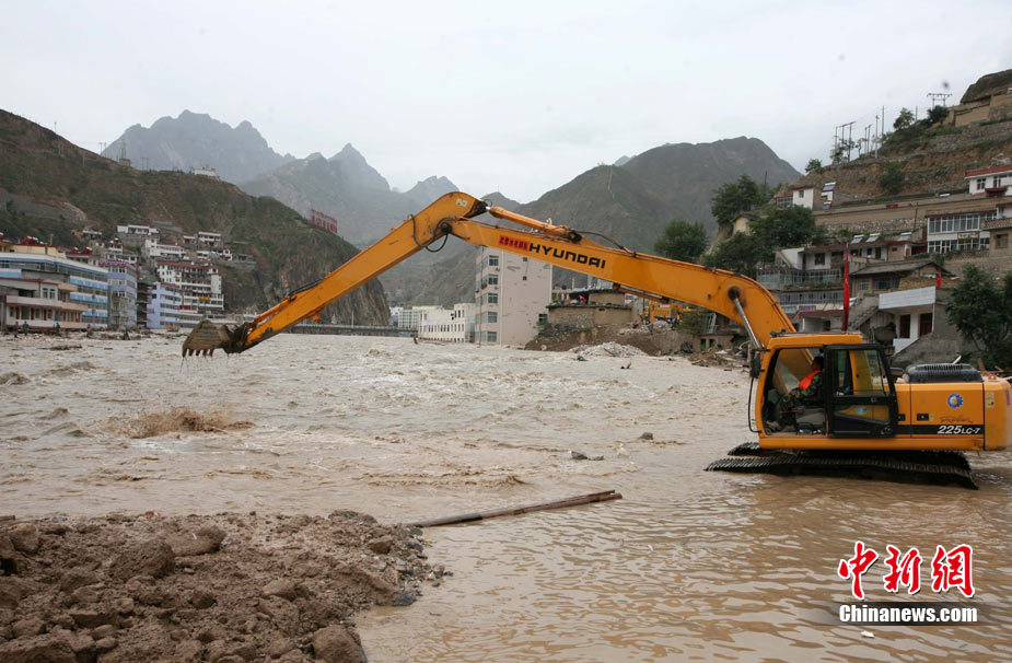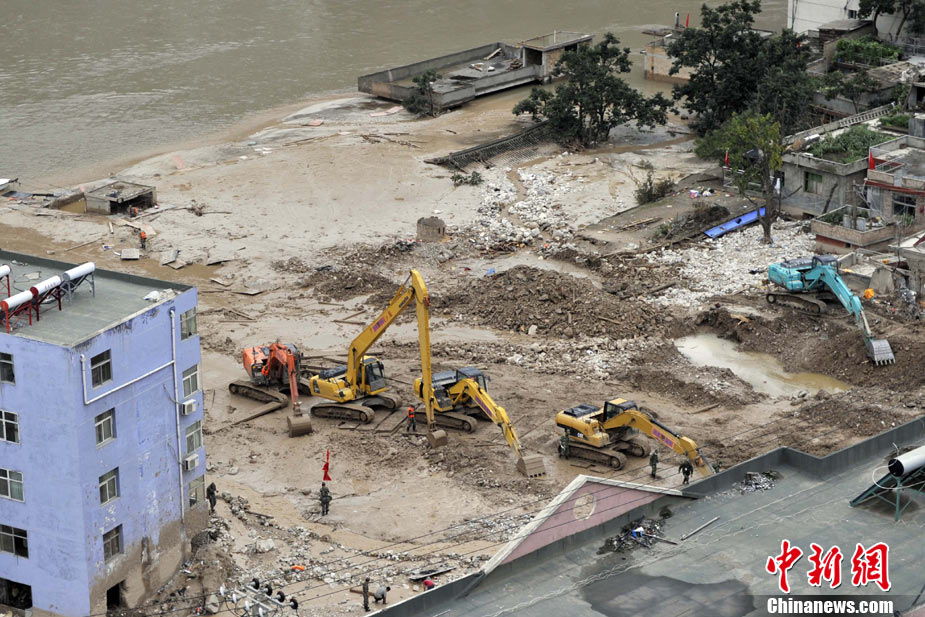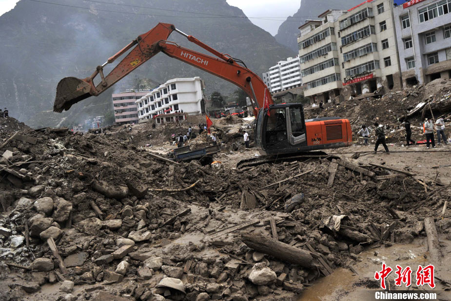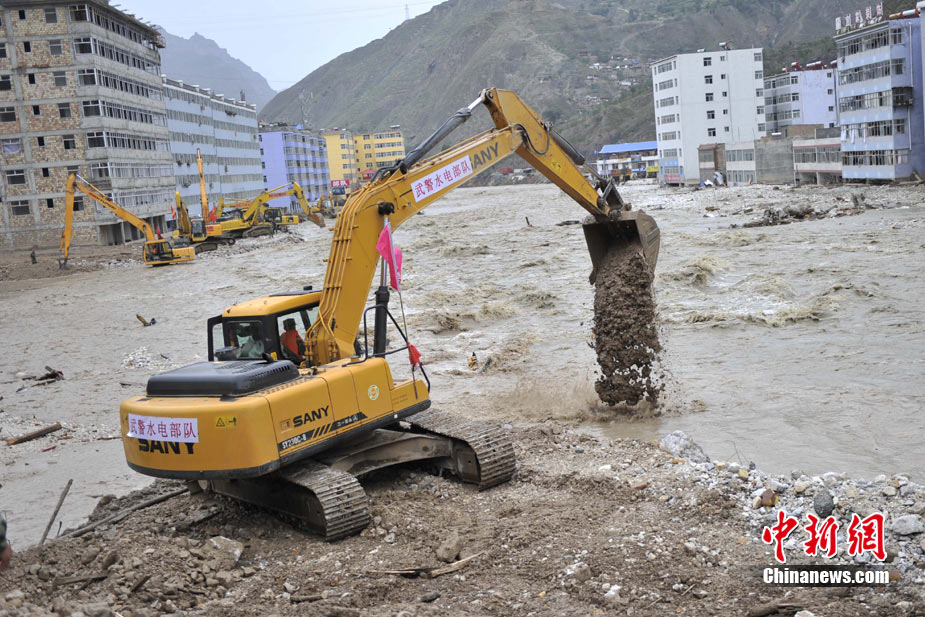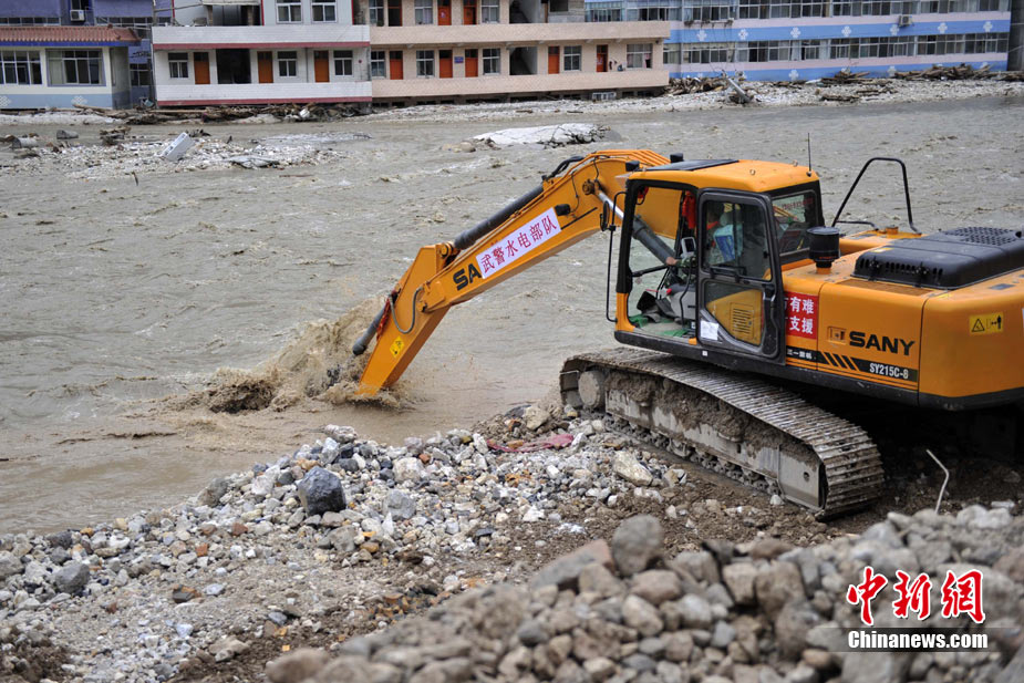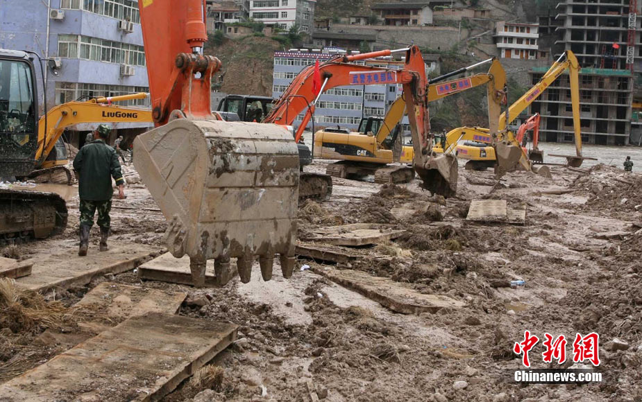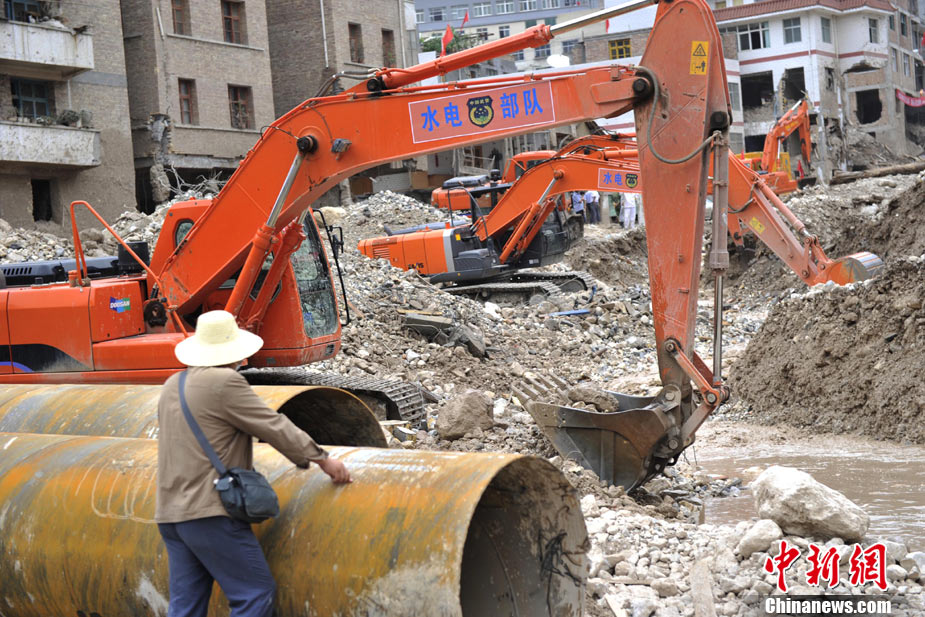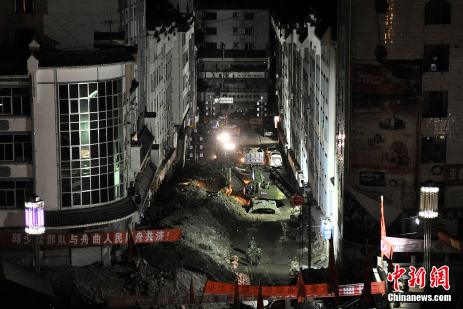 8月14日,舟曲災(zāi)區(qū)救援官兵晝夜展開清淤工作。截至當(dāng)日,影響大型機械進(jìn)入舟曲重災(zāi)區(qū)的部分街道已經(jīng)暢通。蘭州軍區(qū)某集團(tuán)軍工兵團(tuán)從13日晚上9點到14日上午9點,出動80人、3臺挖掘機、4臺裝載機、21臺裝卸車,在舟曲縣城南街清理廢墟。經(jīng)過一晚奮戰(zhàn),清理淤泥200立方米,街道已基本暢通。中新網(wǎng)記者 金碩 攝