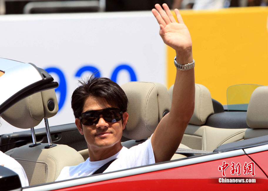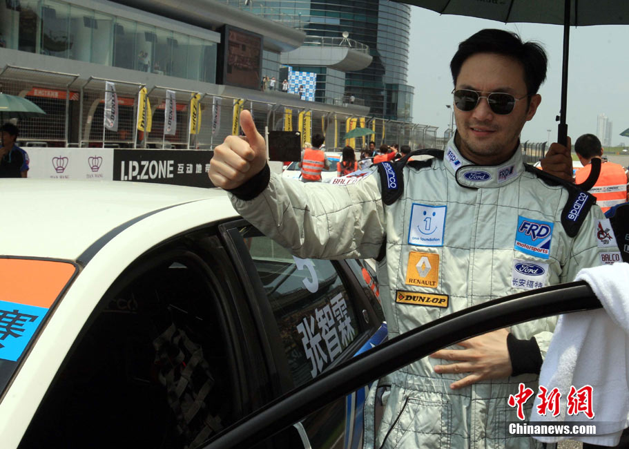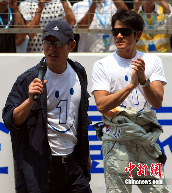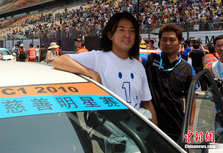 8月16日,由李連杰攜手郭富城等12位明星,在上海國際賽車場參加超級(jí)賽車慈善明星賽。中新社發(fā) 潘索菲 攝