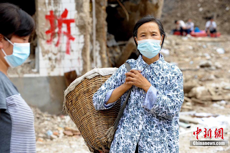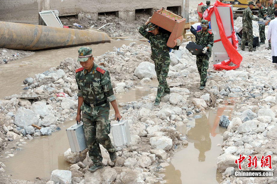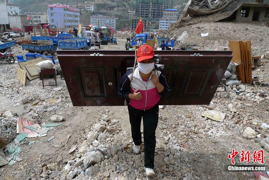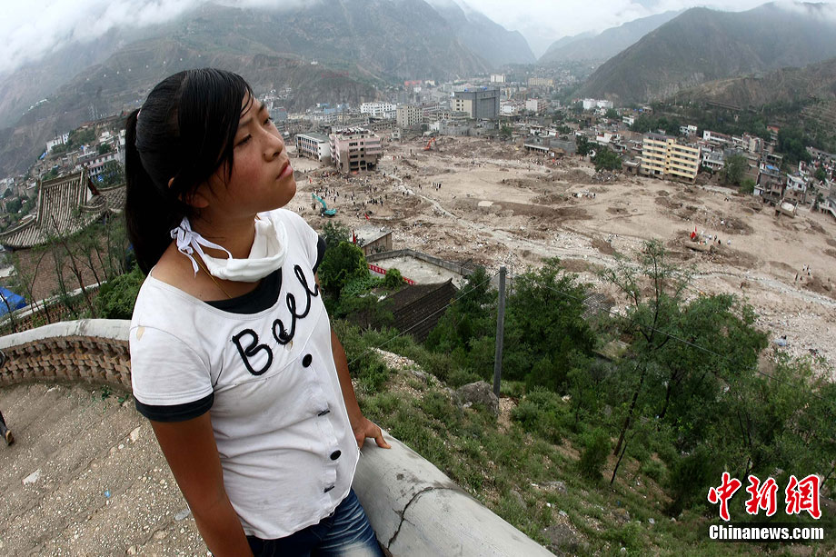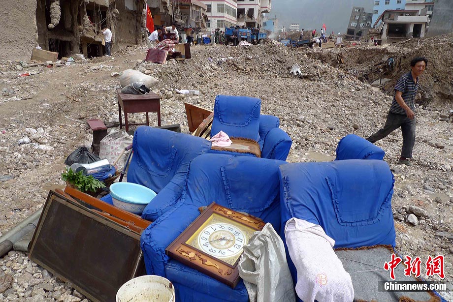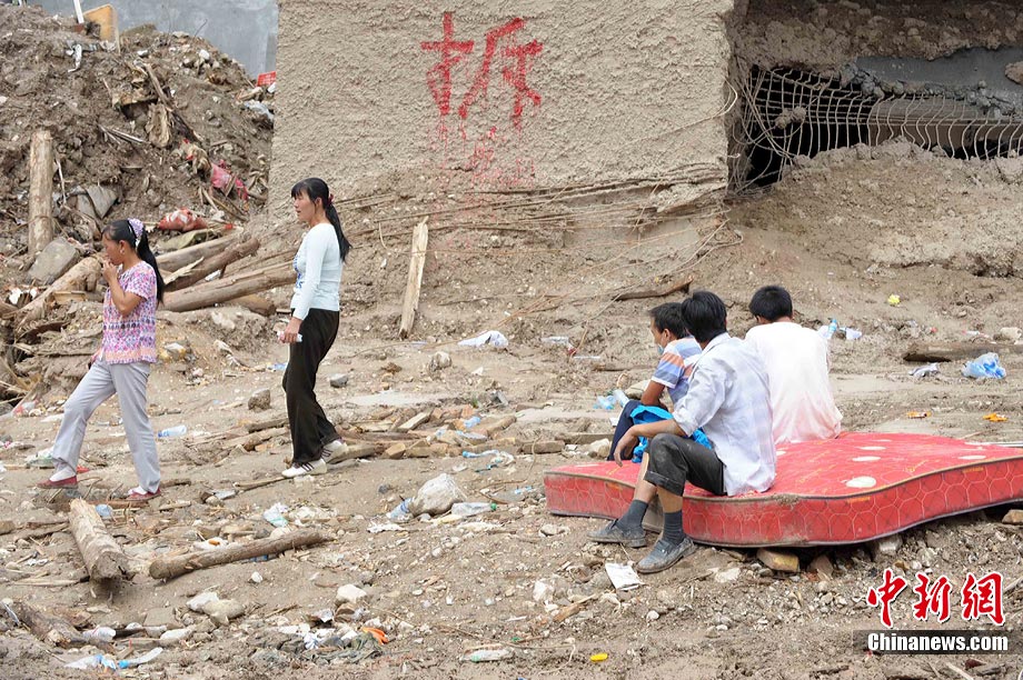 8月16日,舟曲特大泥石流發(fā)生后第9天,一些罹難者的家屬仍然在泥沙中不懈地挖掘,尋找親人的遺體。圖為何繽芬與舅舅一同在廢墟里搜尋。中新社發(fā) 陳文 攝