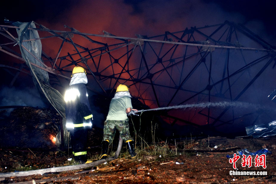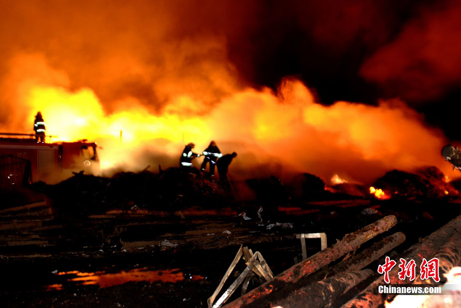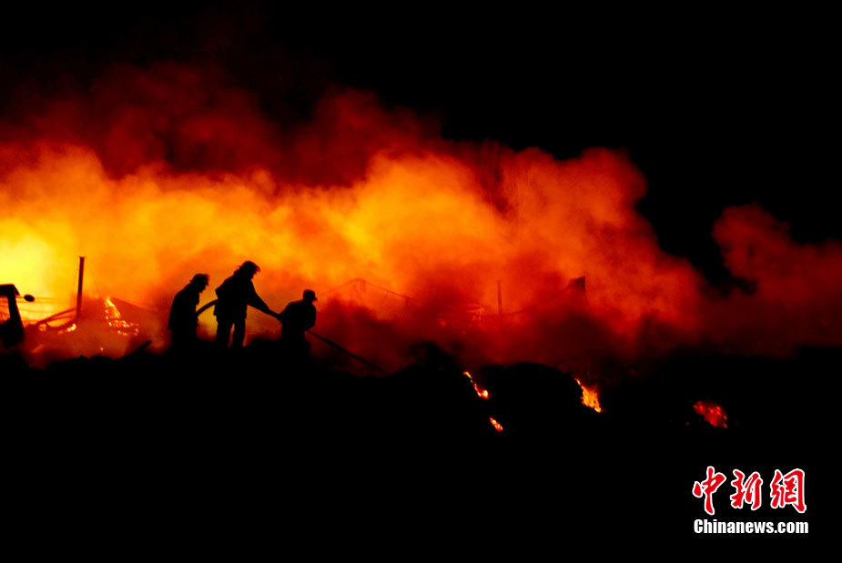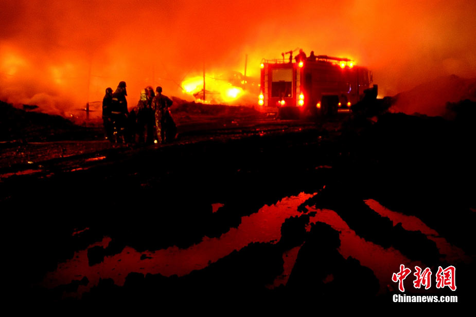 2010年8月16日9時(shí)40分左右,黑龍江省伊春市烏馬河區(qū)華利實(shí)業(yè)有限公司鞭炮廠發(fā)生持續(xù)爆炸。爆炸發(fā)生后,伊春市委、市政府緊急啟動(dòng)爆炸事件、醫(yī)療救護(hù)應(yīng)急處置預(yù)案,緊急調(diào)派公安、消防、醫(yī)療救護(hù)、武警部隊(duì)、駐軍部隊(duì)2000余人及時(shí)進(jìn)行搶救,經(jīng)過8個(gè)多小時(shí)的奮力鏖戰(zhàn),因爆炸引起的火災(zāi)已全部撲滅。截至17日零時(shí),發(fā)生在當(dāng)?shù)貫躐R河區(qū)的鞭炮廠爆炸已造成19人死亡,5人失蹤,住院傷者153人。準(zhǔn)確原因正在進(jìn)一步調(diào)查之中。圖為16日夜23時(shí)30分,武警消防部隊(duì)官兵不辭辛苦仍戰(zhàn)斗在火場(chǎng)一線清理殘火。陳剛 攝