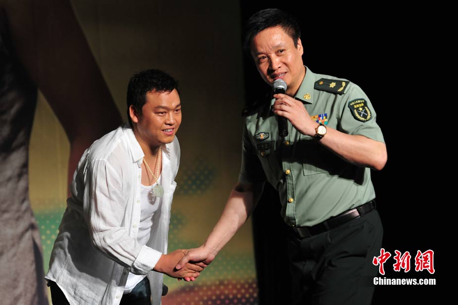 8月17日,被譽為“西部歌王”的原生態(tài)歌手高保利首張專輯《極域天音》在北京發(fā)布。著名歌唱家、藝術家王昆、徐沛東、姜昆、戴志誠到場祝賀,和高保利同為山西人的閻維文、譚晶上臺力挺老鄉(xiāng)讓高保利十分激動。圖為姜昆(中)和老搭檔戴志誠(左)現(xiàn)場不忘逗樂。中新社記者 李學仕 攝