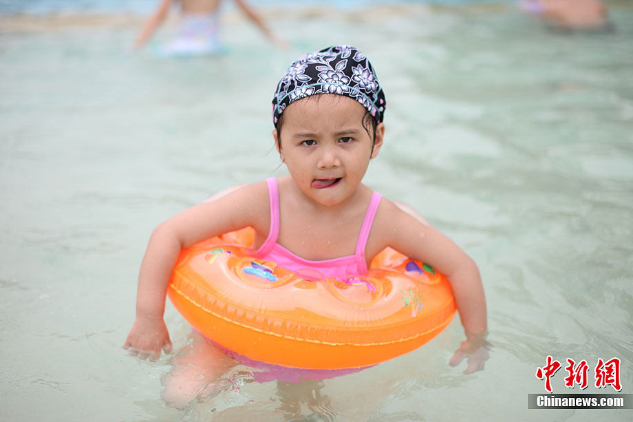 8月19日,重慶再發(fā)高溫橙色預(yù)警,預(yù)計23日以前該市將連晴高溫。為尋涼爽,一小孩趴在噴水孔附近感受水噴全身的清涼。劉函冉 攝
