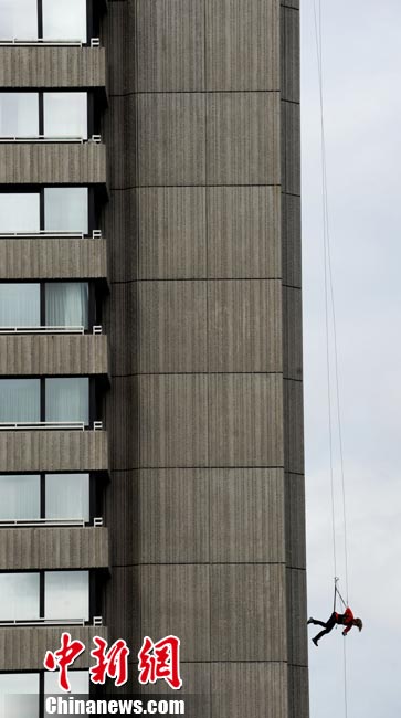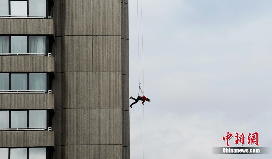 8月19日,德國(guó)視障滑雪運(yùn)動(dòng)員、殘奧會(huì)越野滑雪比賽金牌得主瓦瑞那·本特勒在德國(guó)南部城市慕尼黑參加“高樓漫步”活動(dòng)。