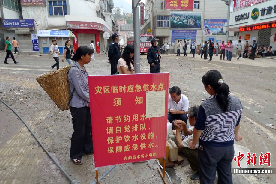 8月21日,舟曲特大山洪泥石流14天之后,舟曲縣城仍然為水所“困”:部分城市建設(shè)施仍然浸泡在水中,供排水系統(tǒng)嚴(yán)重受損。同時,雖然當(dāng)?shù)?萬人的基本飲水已經(jīng)得到了解決,但生活用水仍存在較大缺口。中新社記者 侯志紅 攝