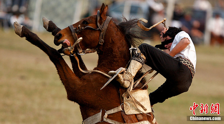 當(dāng)?shù)貢r(shí)間8月22日,阿根廷小鎮(zhèn)豪雷吉舉行了傳統(tǒng)的高喬民俗節(jié)馬術(shù)表演。驚險(xiǎn)刺激的馬術(shù)表演使觀眾們看到了別樣風(fēng)俗。