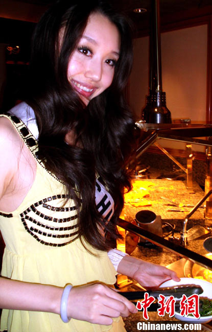 當(dāng)?shù)貢r(shí)間8月22日 ,正在美國(guó)拉斯維加斯參加第59屆“環(huán)球小姐”(Miss Universe)總決賽的各國(guó)佳麗進(jìn)入最后彩排,在緊張的訓(xùn)練排練之余,佳麗們利用15分鐘的就餐時(shí)間談笑風(fēng)聲。圖為環(huán)球中國(guó)小姐唐雯拉斯維加斯備戰(zhàn)決賽。中新社記者 錢興強(qiáng) 攝