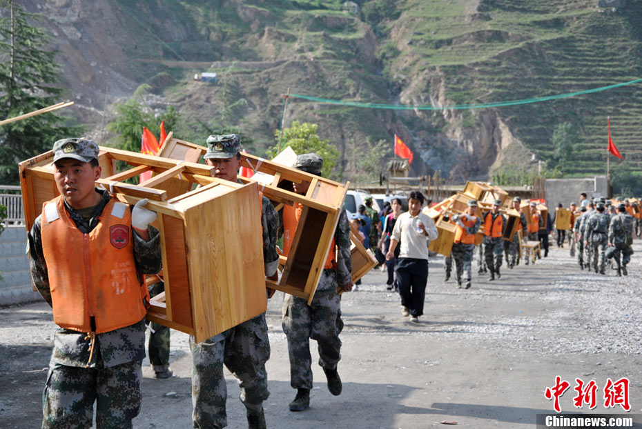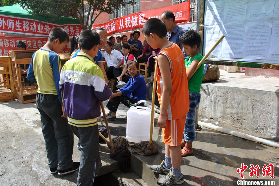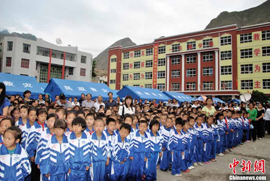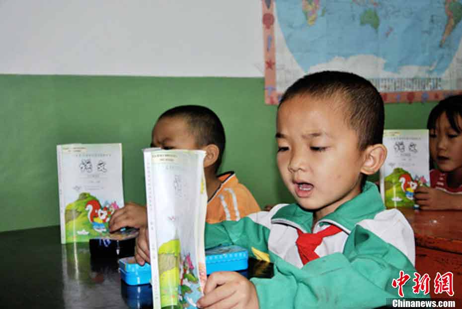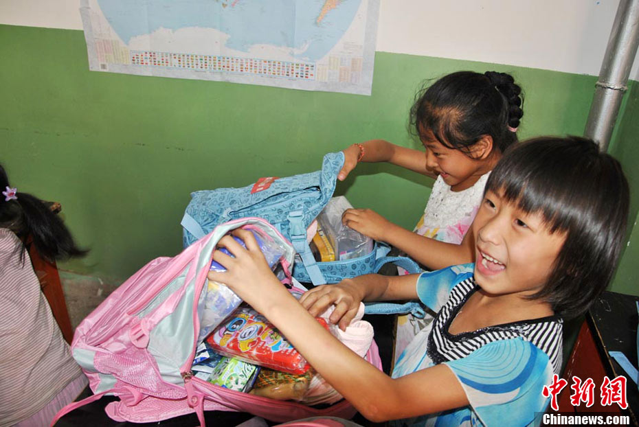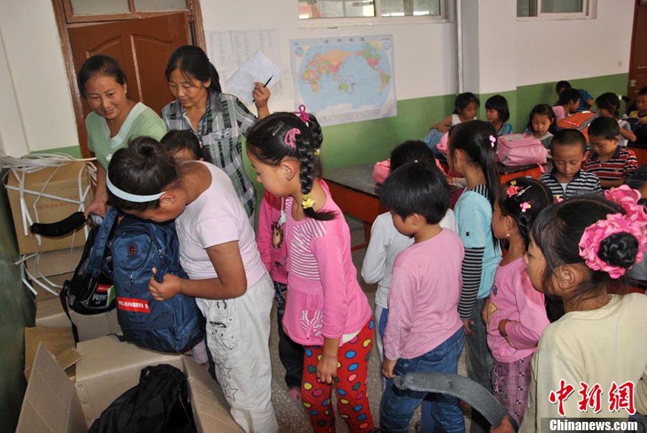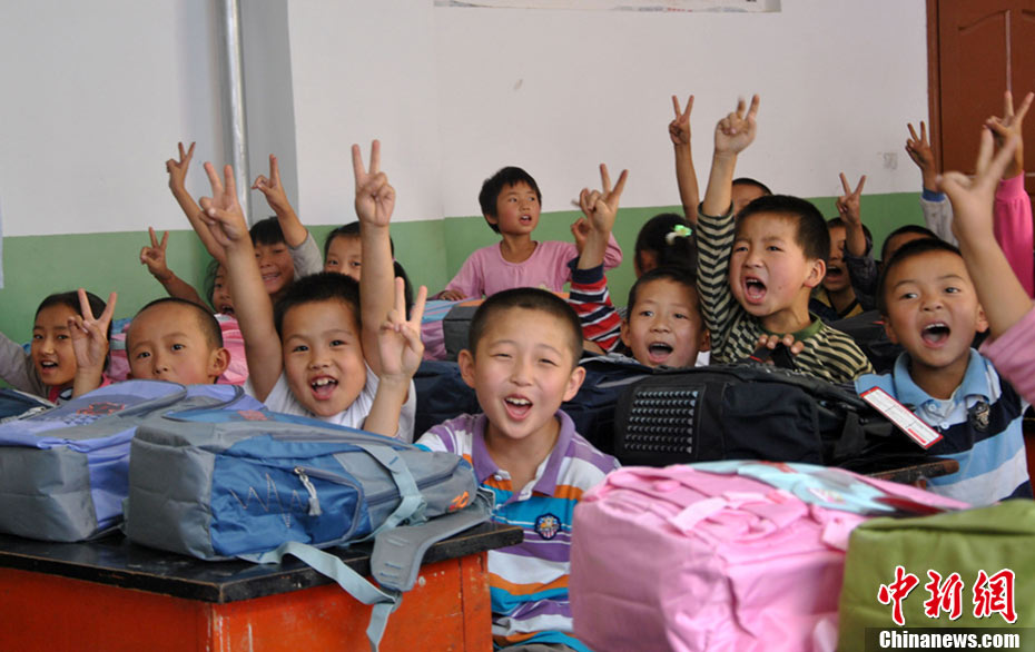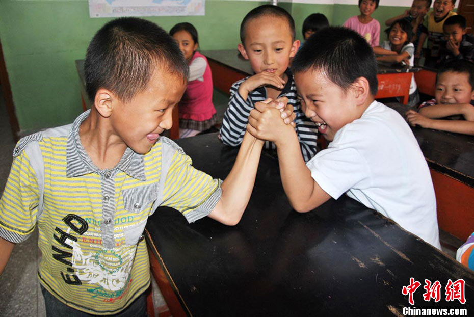 8月24日是甘肅舟曲小學(xué)生開學(xué)的前一天,當(dāng)?shù)貙W(xué)生領(lǐng)到新書包后格外興奮,兩個(gè)小男生在課桌上扳起手腕,平添快樂氛圍。中新社記者 馬曉俊 攝