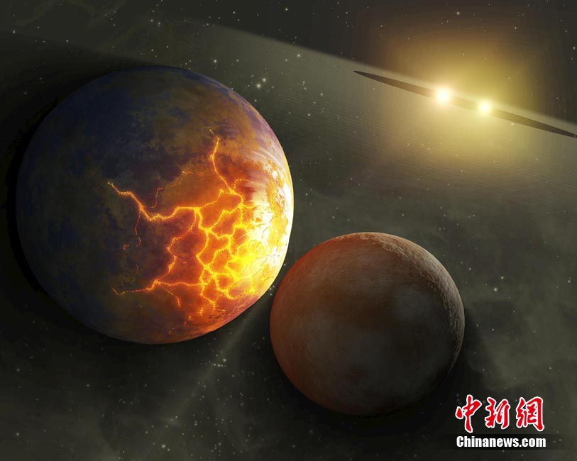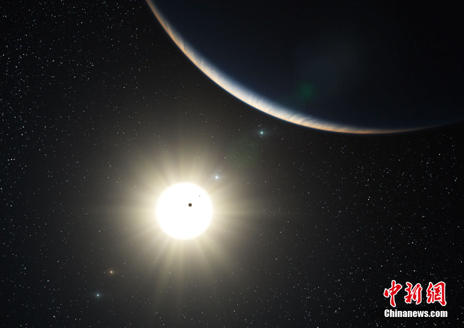 近日,科學(xué)家發(fā)現(xiàn)了一個距離地球127光年的與太陽系十分類似的巨大星系。美國宇航局太空望遠(yuǎn)鏡在太陽系外偵測到了5顆行星。這5顆行星與其母星的距離與太陽系內(nèi)行星與太陽的距離十分相似。天文學(xué)家正在尋找另外2顆行星存在的證據(jù)。圖為該星系的藝術(shù)想象圖。
