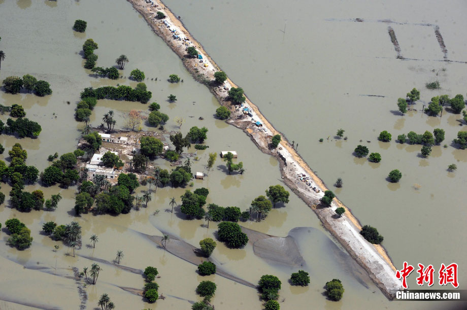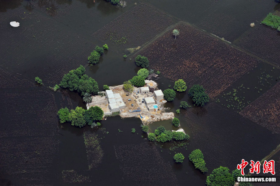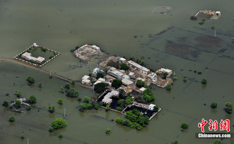 8月24日,聯(lián)合國(guó)人道事務(wù)協(xié)調(diào)廳表示,目前仍有80萬(wàn)巴基斯坦災(zāi)民被洪水圍困。圖為航拍巴基斯坦被洪水淹沒(méi)的羅錢地區(qū)。