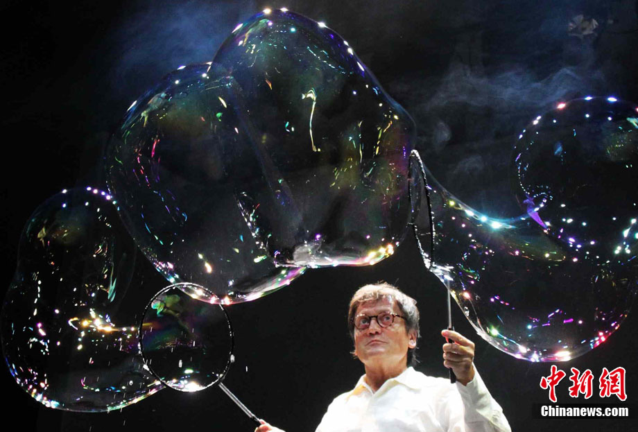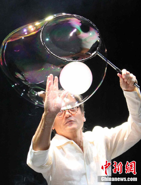 8月30日的上海世博會西班牙館日即將到來,多場地道的西班牙演出陸續(xù)亮相世博園。圖為在世博會西班牙館,西班牙肥皂泡魔術(shù)師佩普·布奧正在表演他的神奇“泡泡秀”。中新社記者 郭虹 攝