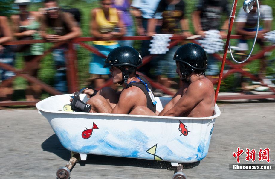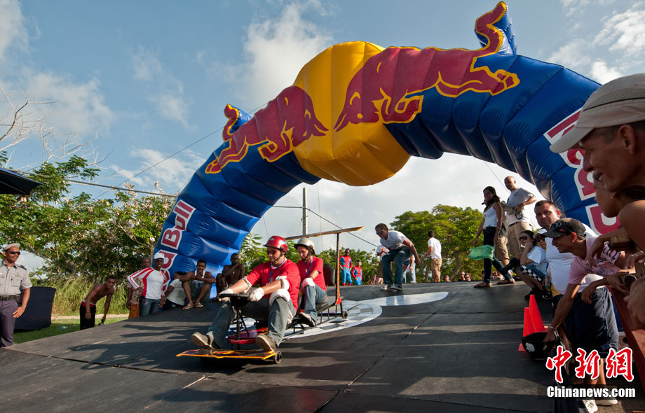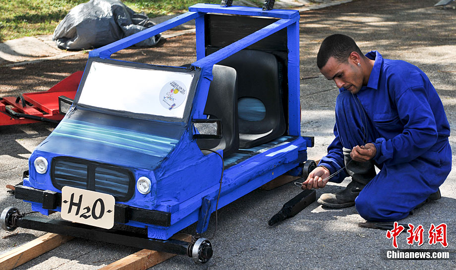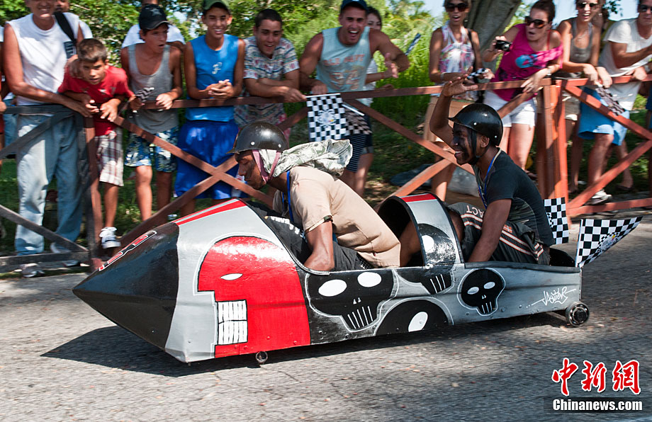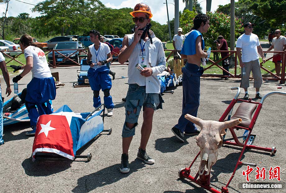 當(dāng)?shù)貢r(shí)間8月27日,古巴首都哈瓦那舉行了首屆無動(dòng)力自制小車大賽。82名參賽選手駕駛著41輛自制小車參賽。
