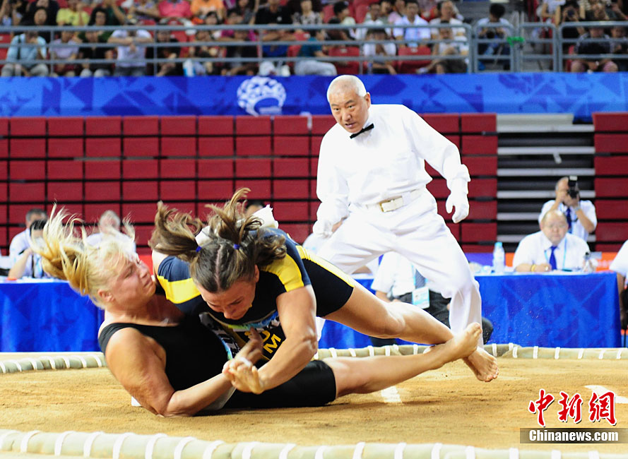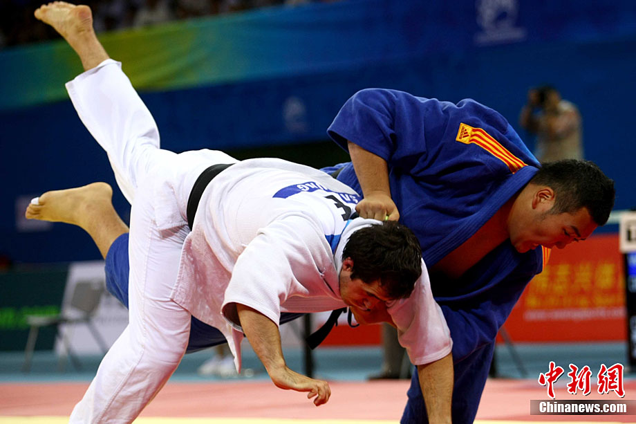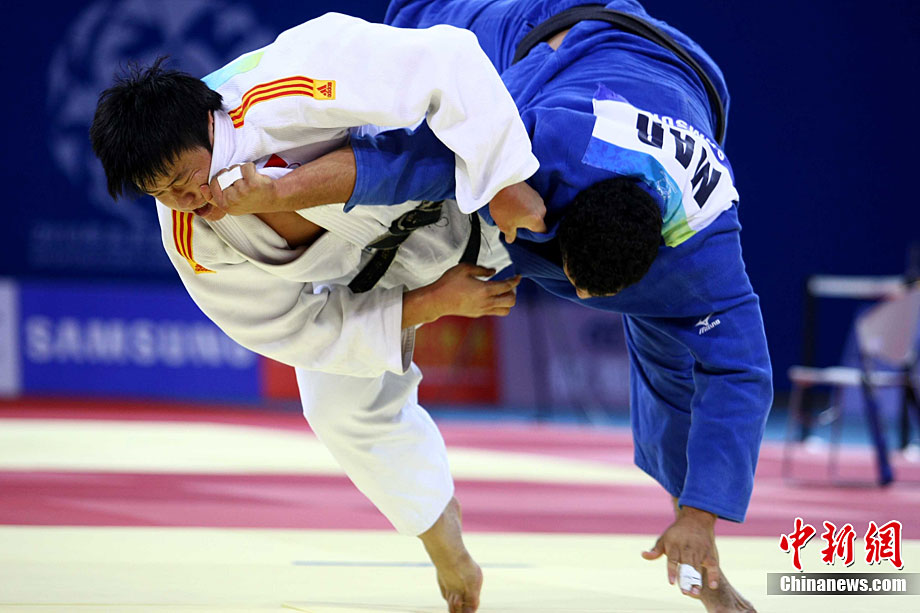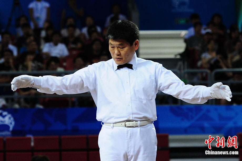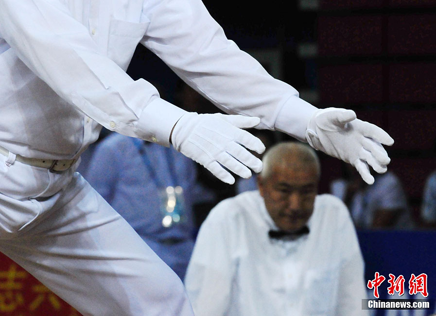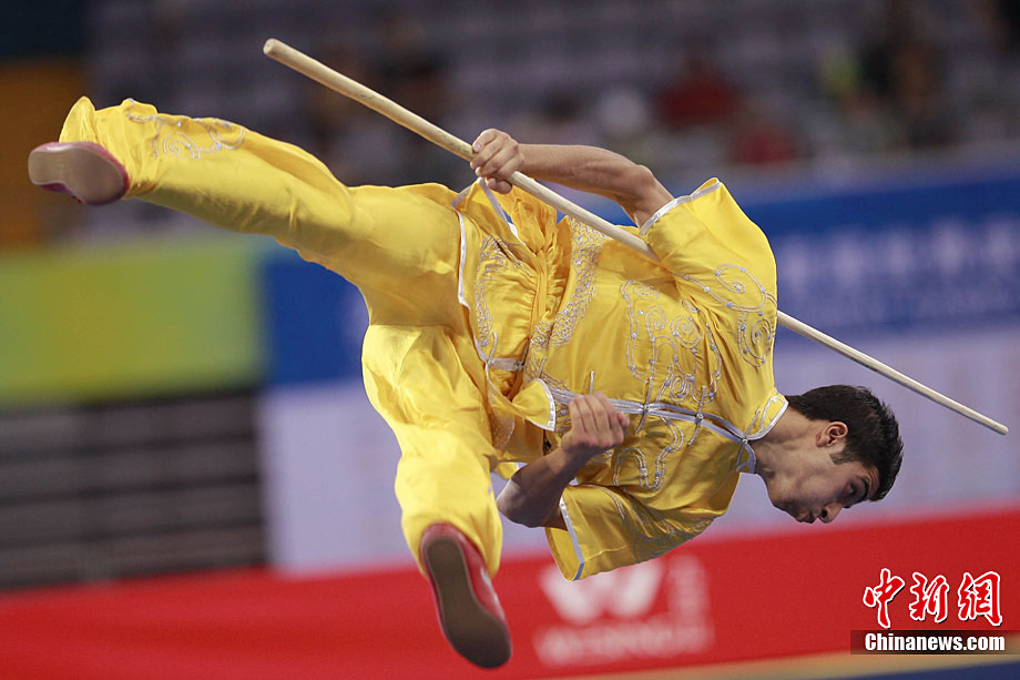 8月28日,2010年北京首屆武會(huì)進(jìn)行首日比賽,其中武術(shù)項(xiàng)目的比賽在北京奧林匹克體育中心體育館進(jìn)行。圖為中國(guó)香港選手Zheng Tian Hui在女子劍術(shù)的比賽中以9.80分穩(wěn)居第一位。中新社記者 盛佳鵬 攝