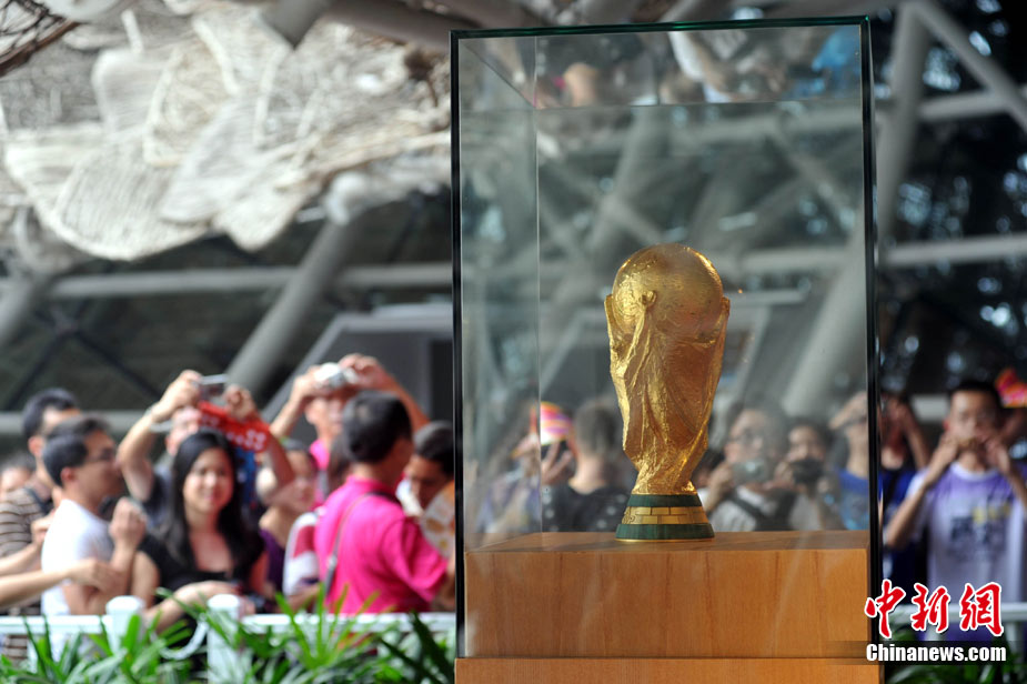8月30日晨,“大力神杯”空降上海世博園西班牙館。當(dāng)天正值上海世博會西班牙國家館日!按罅ι癖弊鞫虝和A,展出一天后,將隨即運(yùn)回西班牙國內(nèi)巡回展出。中新社記者 蔣雪林 攝