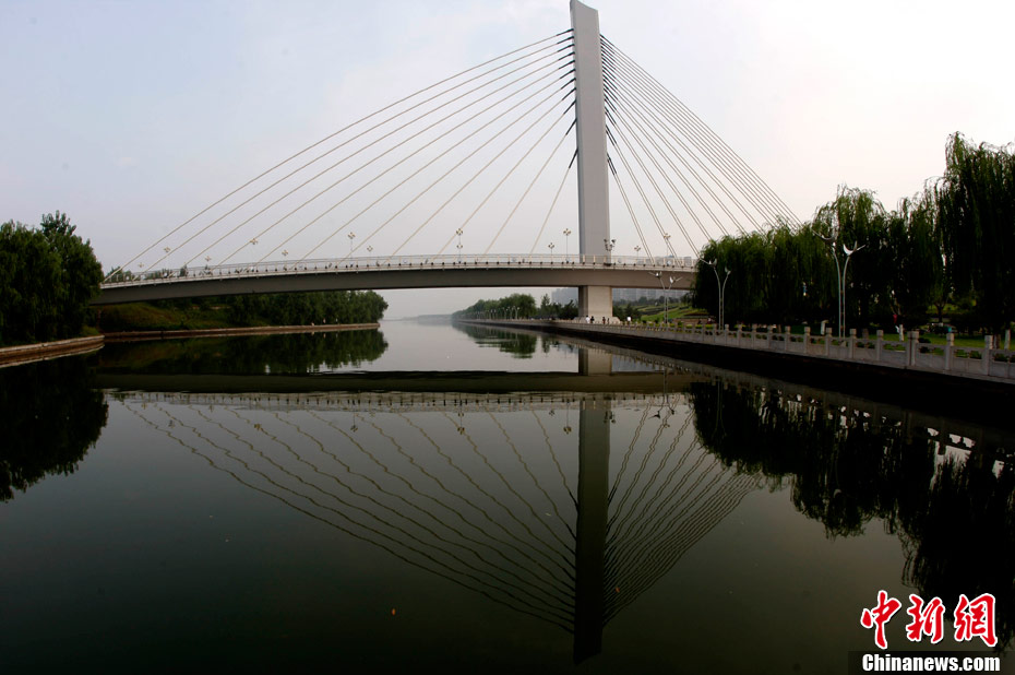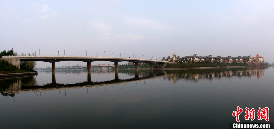 古老的灤河,這條河北省第二大河在遷安市境內(nèi)蜿蜒54公里。幾年前,這里還只是茫茫一片的干涸沙灘,到處都是垃圾。而今千畝河面碧波蕩漾,5座小島拱衛(wèi)湖心島,猶如一朵盛開(kāi)的紅蓮,島島相通,橋水交映。趙振清 攝