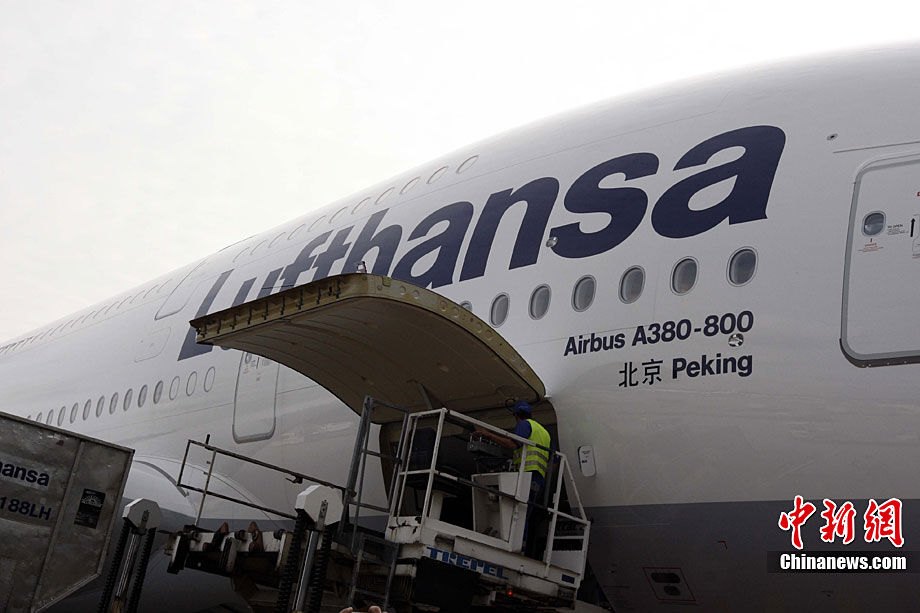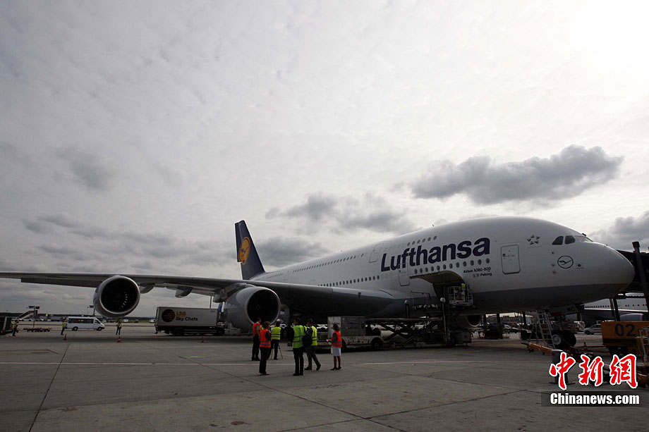 九月二日,德國(guó)漢莎航空公司正式開通A380中國(guó)北京至漢莎德國(guó)主樞紐法蘭克福間航線。漢莎航空公司是首家在通往中國(guó)的長(zhǎng)途國(guó)際航線上采用被譽(yù)為是世界上體積最大、最具經(jīng)濟(jì)效益的A380空中客車的歐洲航空公司。為了紀(jì)念這一歷史性的時(shí)刻以及漢莎航空與中國(guó)深厚的友誼,這架A380被命名為“北京號(hào)”,而這也是漢莎航空首次以非德國(guó)城市命名旗下飛機(jī)。中新社記者 任海霞 攝