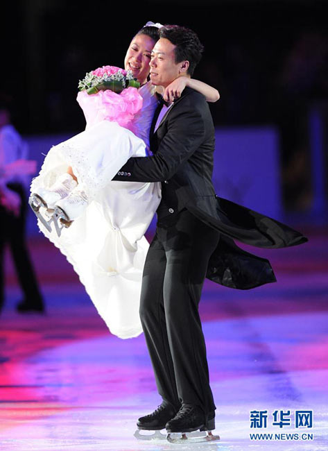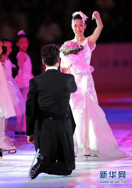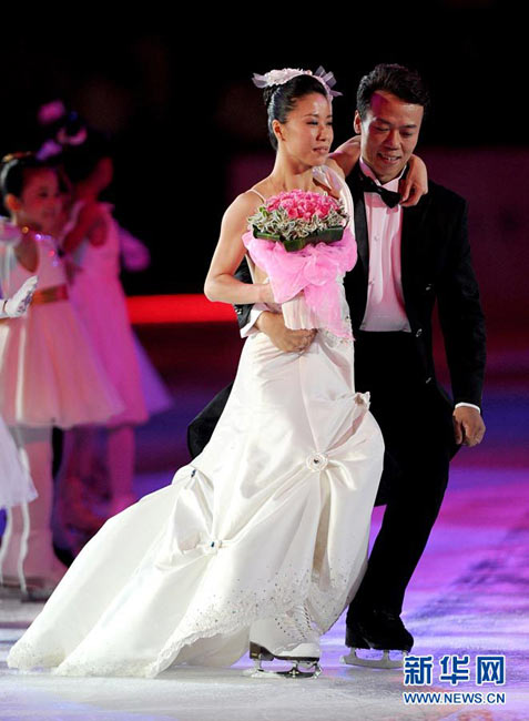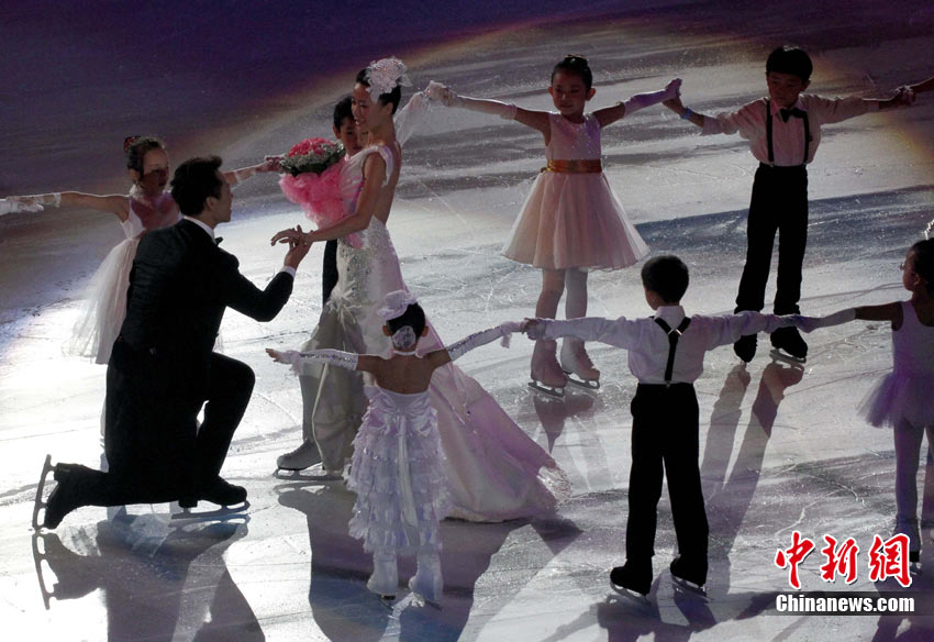 9月4日,申雪/趙宏博在首都體育館舉辦冰上婚典,并邀請普魯申科、亞古丁、約翰尼·威爾、淺田真央、羅切特等世界花滑巨星,聯(lián)袂世界著名編舞大師瑞內(nèi)·羅卡、歌星張靚穎、小提琴家呂思清等,為中國觀眾奉獻上一場賞心悅目、浪漫唯美的視聽盛宴。