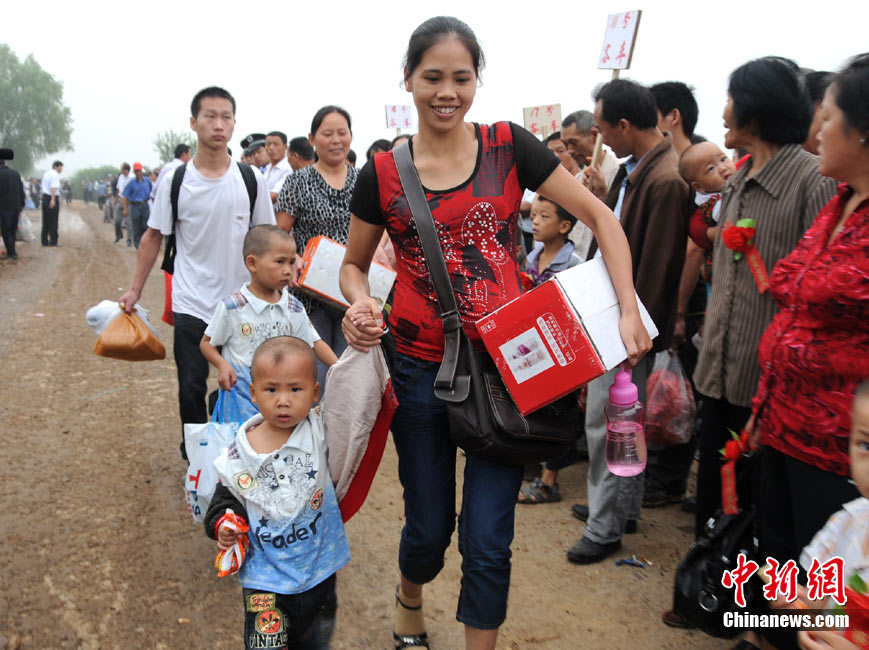 9月4日,河南省淅川縣盛灣鎮(zhèn)河扒村363戶1432名移民別離故土,奔赴新的家園。至此,河南省南水北調(diào)丹江口庫區(qū)首批移民集中搬遷安置工作圓滿完成。6月17日至9月4日,河南省淅川縣南水北調(diào)丹江口庫區(qū)首批60886名移民在78天時間全部搬遷完畢,整個過程無一例安全責(zé)任事故,無一例移民人身傷亡事故,實現(xiàn)了平安、有序、和諧搬遷。中新社發(fā) 淅川宣 攝