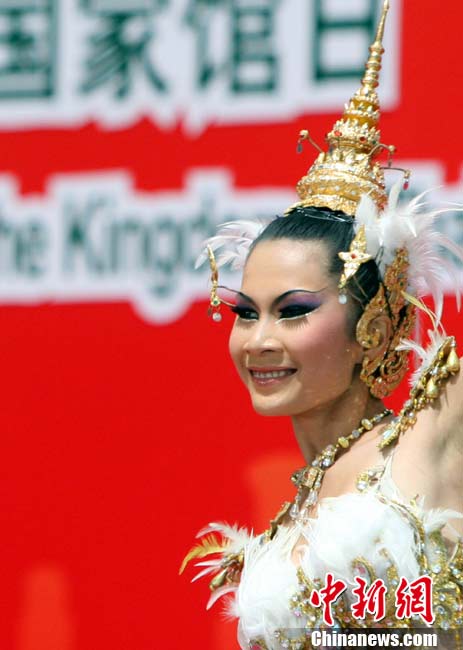 9月5日,上海世博會(huì)迎來(lái)泰國(guó)國(guó)家館日。當(dāng)日在世博中心舉行的慶典儀式上,一位泰國(guó)女舞者為大家表演泰國(guó)傳統(tǒng)舞蹈,展示迷人的泰式風(fēng)情。中新社記者 湯彥俊 攝