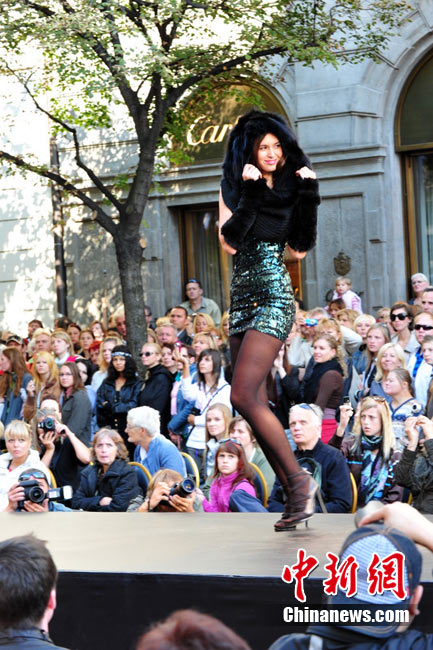 捷克首都布拉格4日和5日接連兩天在市中心最繁華的商業(yè)街巴黎大街封閉車(chē)輛交通,在街道中間搭起長(zhǎng)臺(tái),向公眾表演時(shí)裝秀。其中一組兒童秀引起觀眾轟動(dòng)。黃頻 攝