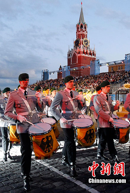 當?shù)貢r間9月4日,第二屆俄羅斯國際軍樂節(jié)在莫斯科紅場開幕。來自俄羅斯、美國、英國、哈薩克斯坦等9個國家的軍樂團及演員參加了開幕式演出,為現(xiàn)場的數(shù)千名觀眾奉獻了一場精彩紛呈的視聽盛宴。
