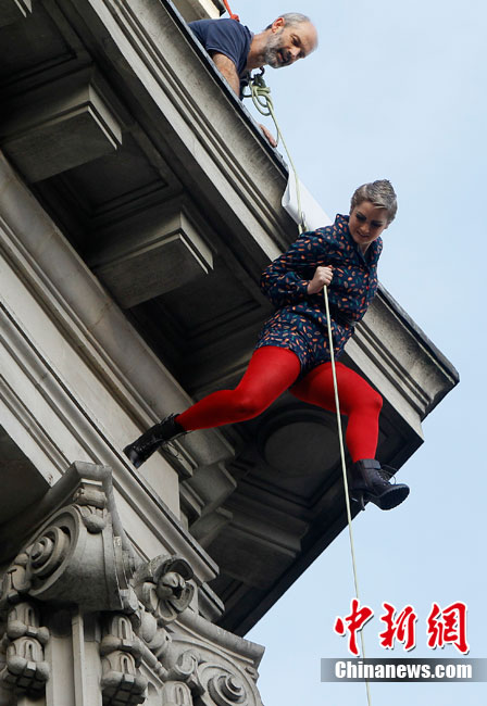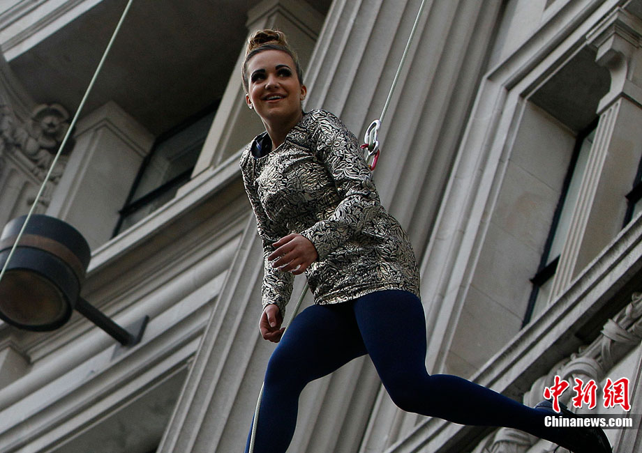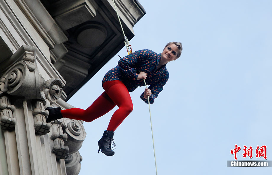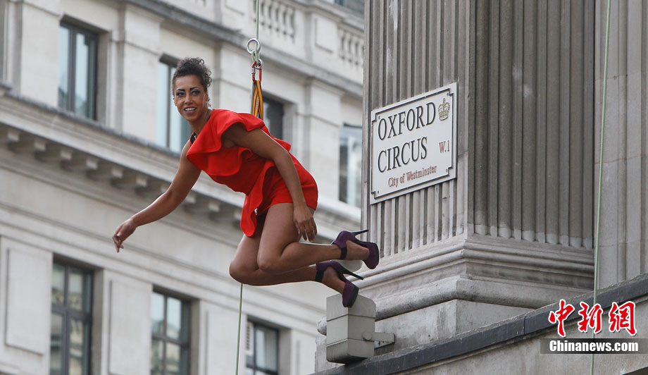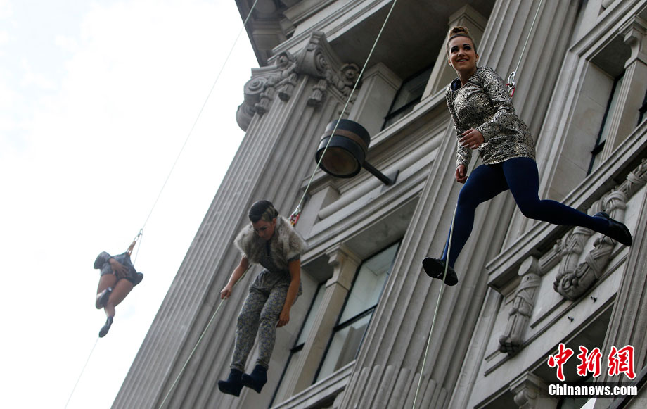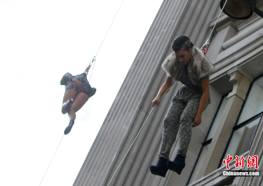 當?shù)貢r間9月6日,一批模特在英國倫敦掛上鋼絲,在大樓外上演了一場精險刺激的空中時裝秀。這場時裝秀是為了宣傳即將到來的英國時裝周而特別設(shè)計的。
