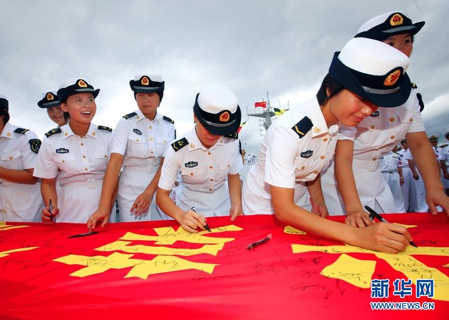 9月6日,“和平方舟”號醫(yī)院船舉行宣誓儀式。當日,經過連續(xù)多天的航行,前往亞丁灣海域及吉布提等亞非五國執(zhí)行“和諧使命—2010”任務的中國“和平方舟”號醫(yī)院船駛出國門。這是“和平方舟”號醫(yī)院船首次穿越南海駛向大洋。428名官兵及醫(yī)務人員全程參加這次為期87天的任務,總航程將達1.5萬多海里。自8月31日駛離舟山碼頭后,醫(yī)院船經受了“獅子山”“圓規(guī)”“南川”臺風的考驗,穿越臺灣海峽、西沙群島和南沙群島,順利抵達南海。查春明 攝 圖片來源:新華網