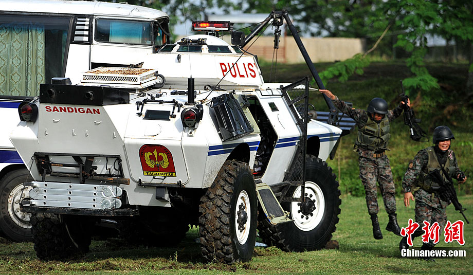 當(dāng)?shù)貢r(shí)間9月9日,菲律賓警察特別行動(dòng)部隊(duì)成員在菲律賓首都馬尼拉附近的營(yíng)地舉行了人質(zhì)救援演習(xí)。菲律賓總統(tǒng)阿基諾三世親自前往觀看該救援演習(xí)。