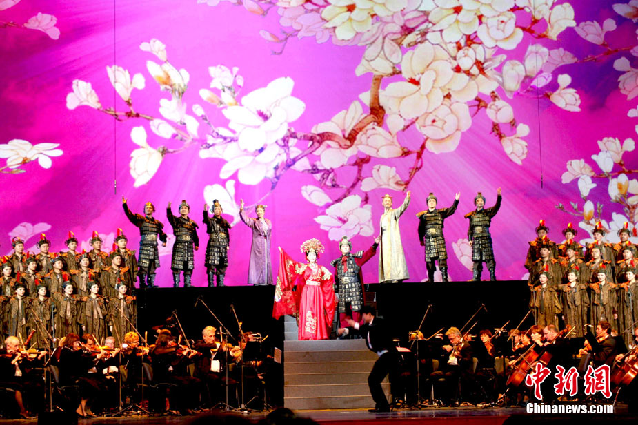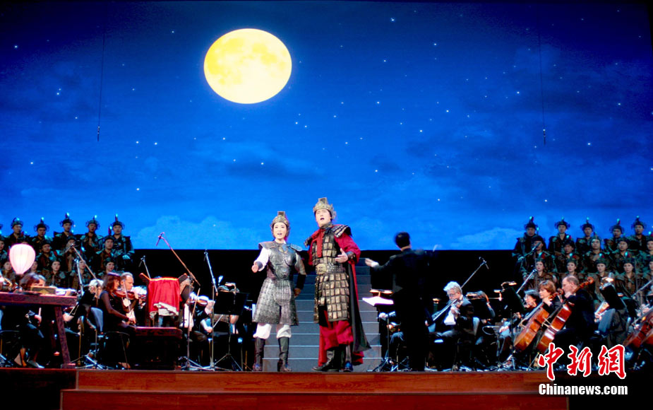 9月9日晚,中國人民解放軍總政治部歌舞團(tuán)攜大型原創(chuàng)民族歌劇《木蘭詩篇》在莫斯科克里姆林宮大劇院成功演出。作為俄羅斯“漢語年”框架下的一項(xiàng)重要活動(dòng),此次赴俄首場(chǎng)演出由青年歌唱家譚晶出演花木蘭一角。中新社發(fā) 田冰 攝