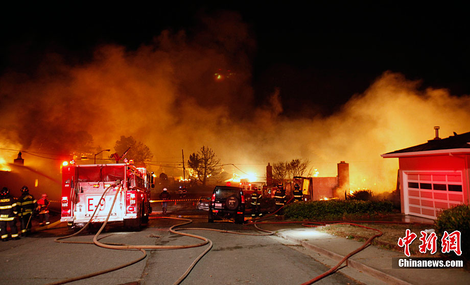 當?shù)貢r間9月9日,美國加利福尼亞州舊金山國際機場附近一處住宅區(qū)發(fā)生大火,火災(zāi)可能是由天然氣管道爆裂引發(fā)的。至少十幾所房屋被燒毀,數(shù)英里外都能看見滾滾濃煙。
