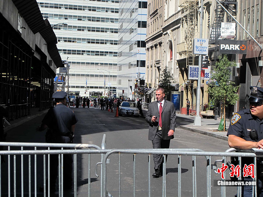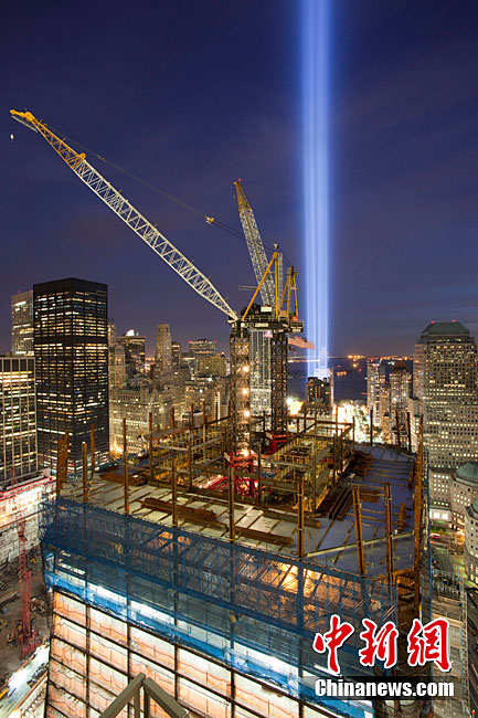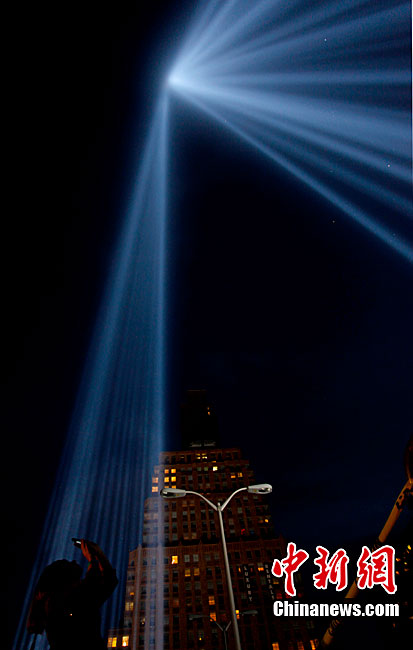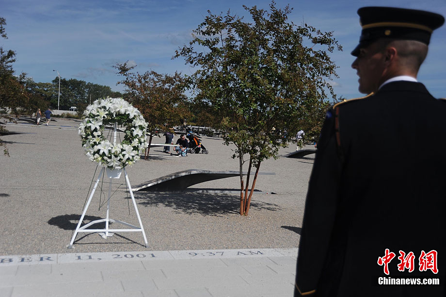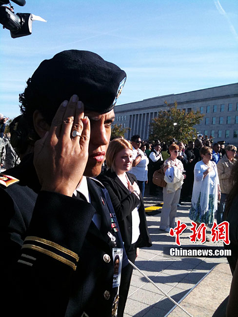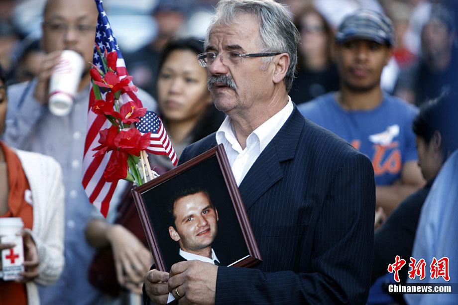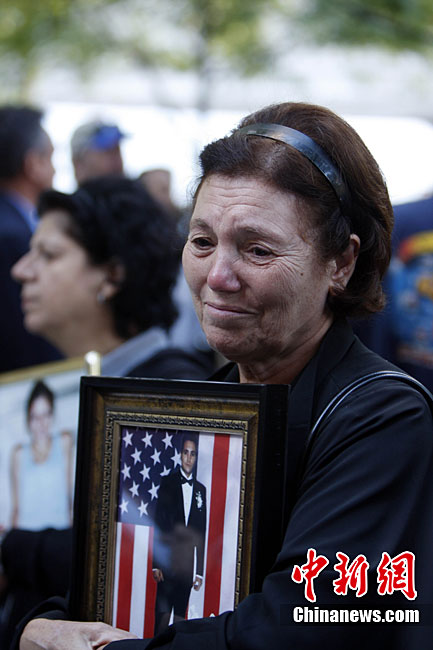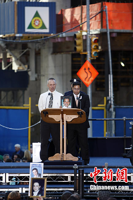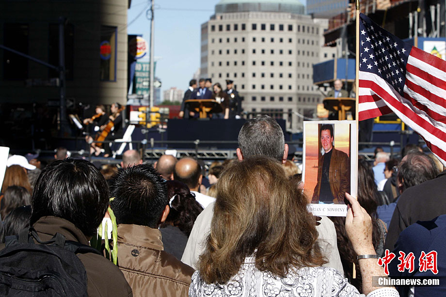 紐約世貿(mào)遺址當(dāng)?shù)貢r(shí)間9月11日上午舉行“9·11”事件9周年紀(jì)念活動(dòng),一面“9·11”事件中殘留下來(lái)的美國(guó)國(guó)旗在活動(dòng)中展示。中新社記者 孫宇挺 攝