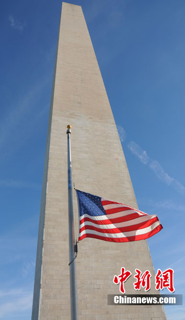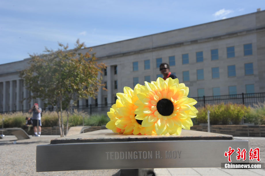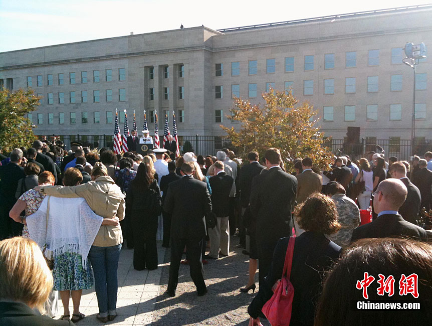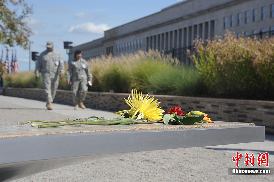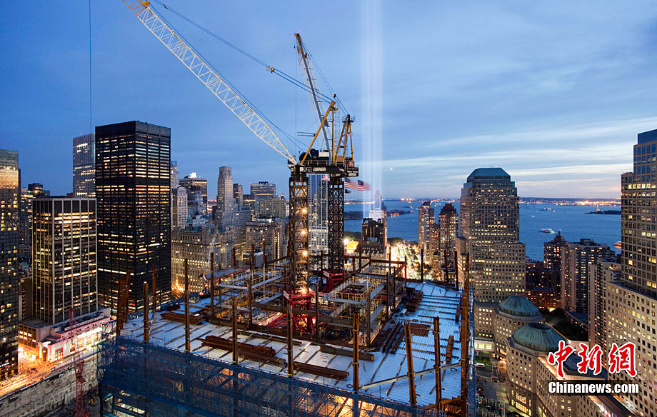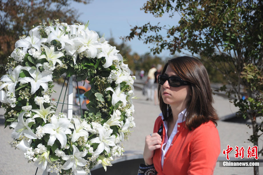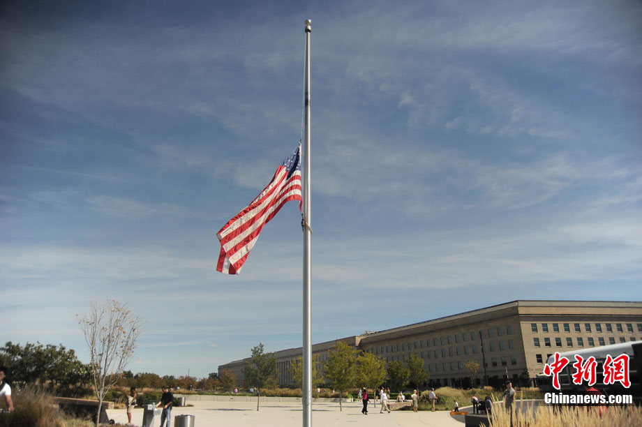 紐約世貿(mào)遺址當(dāng)?shù)貢r(shí)間9月11日上午舉行“9·11”事件9周年紀(jì)念活動(dòng),一面“9·11”事件中殘留下來(lái)的美國(guó)國(guó)旗在活動(dòng)中展示。中新社記者 孫宇挺 攝