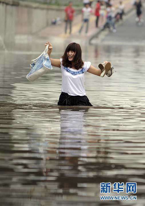 9月11日下午,杭州市濱江區(qū)火炬大道鐵路涵洞內(nèi)積水嚴(yán)重,行人涉水而行。受“莫蘭蒂”影響,自9月11日凌晨4時(shí)起,杭州市濱江區(qū)突降暴雨,多處地段出現(xiàn)積水,據(jù)氣象部門測(cè)算,該區(qū)內(nèi)最大降雨量超過(guò)230毫米,為歷史罕見。胡元勇 攝 圖片來(lái)源:新華網(wǎng)