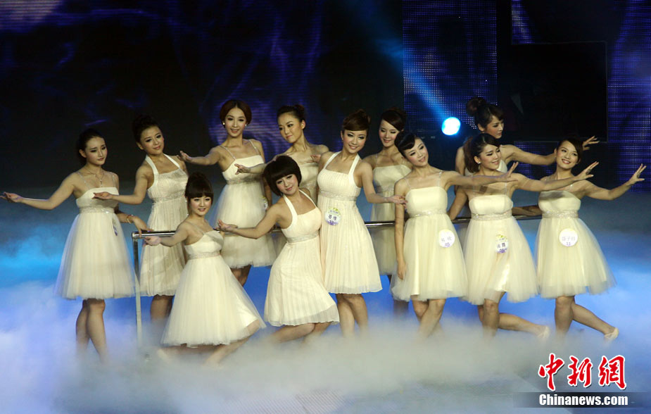 9月12日晚,湖南娛樂頻道2010年度星姐選舉決選月第四場形體秀絢麗上演。星姐12強(qiáng)佳麗身著泳裝,手拿玩具或者運動裝備,在動感的旋律中逐個亮相,展示青春完美體態(tài)。圖為8號佳麗謝綠路(右一)從12位準(zhǔn)星姐中脫穎而出,榮獲了“完美體態(tài)獎”。中新社記者 鄧霞 攝