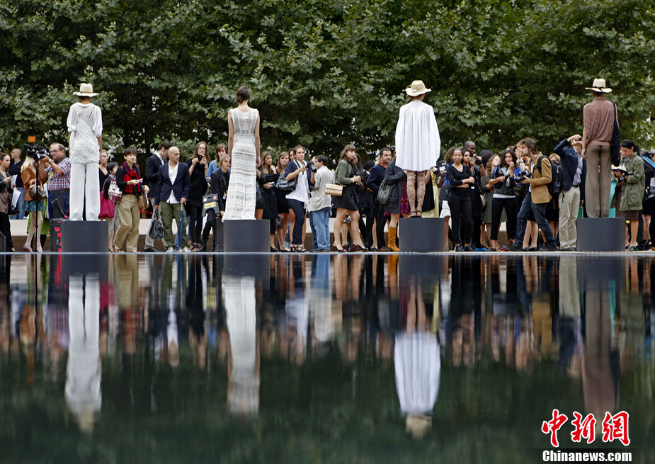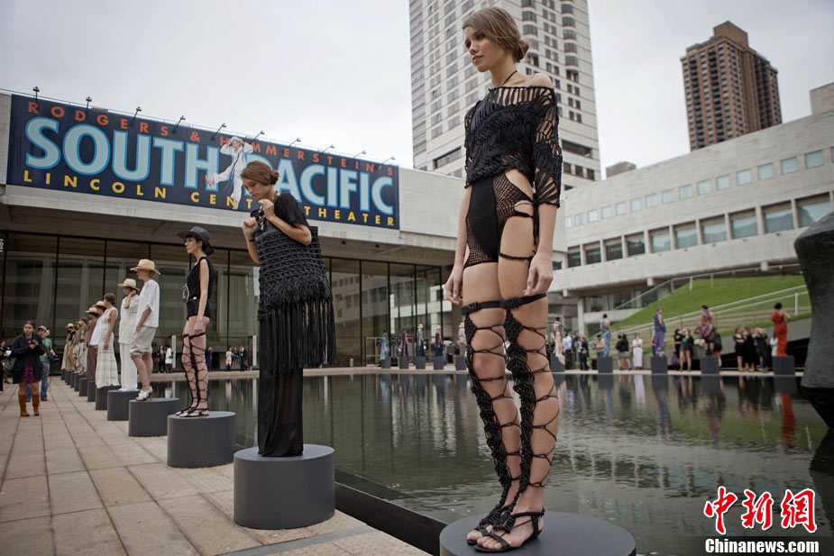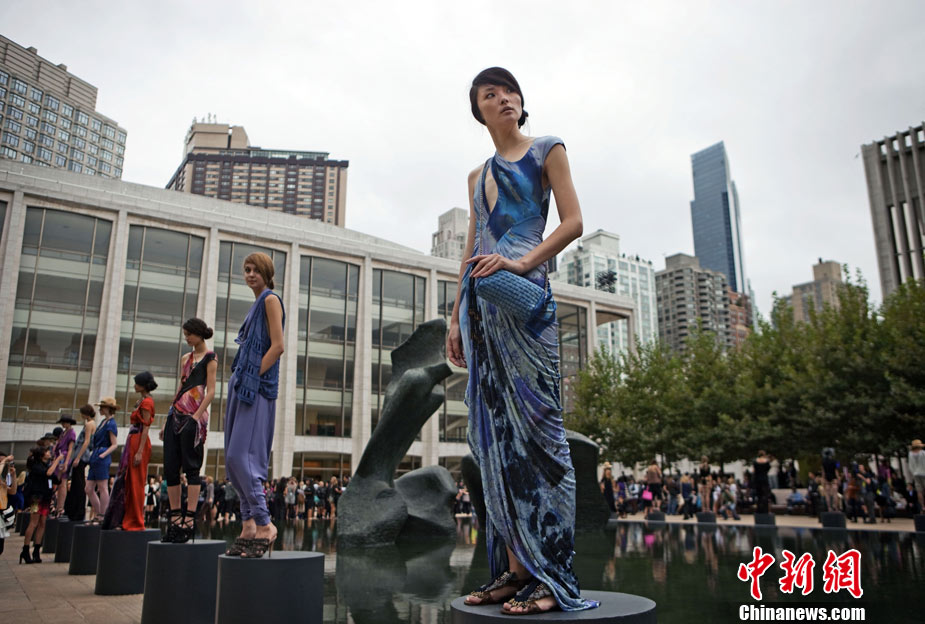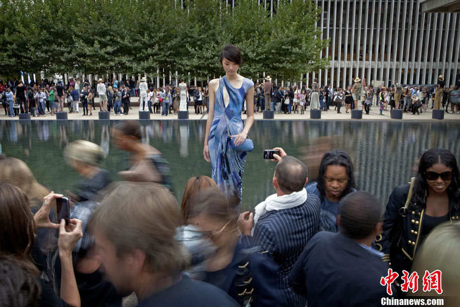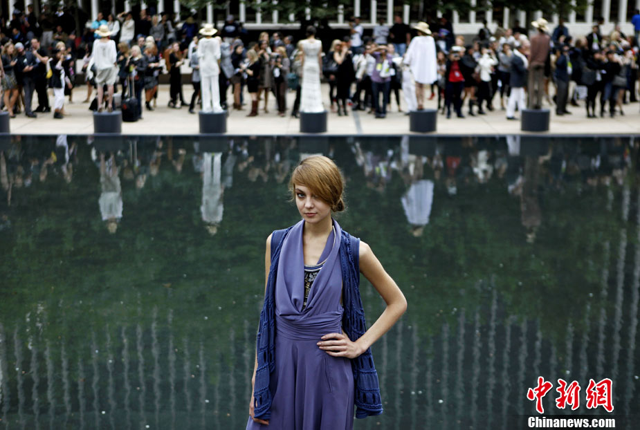 9月12日,美國紐約時裝周上演了一場“湖邊時裝秀”。