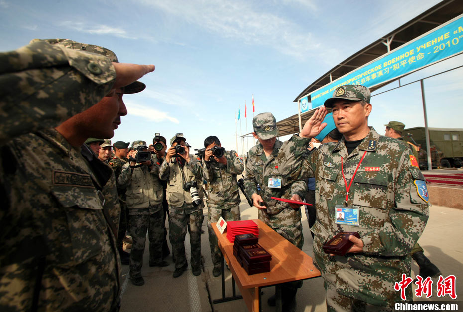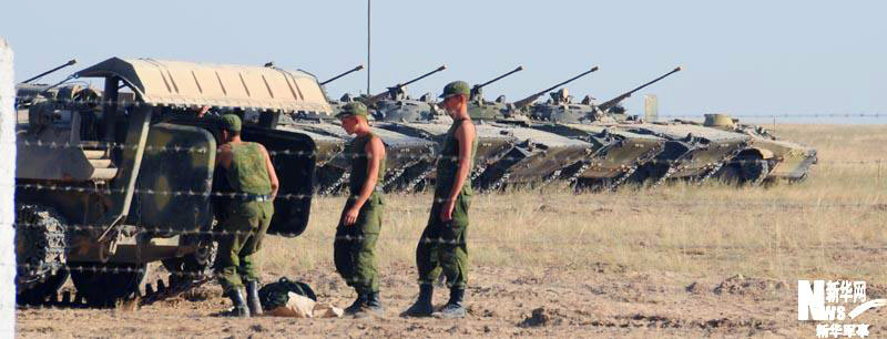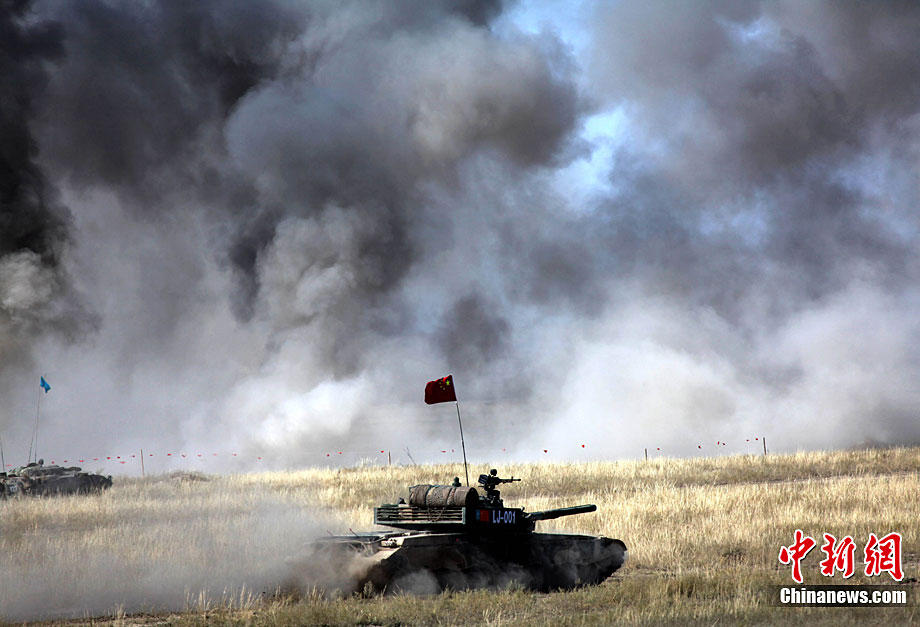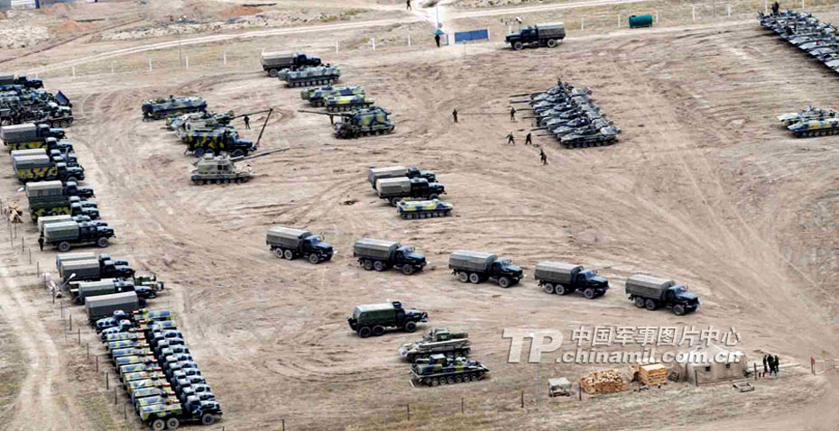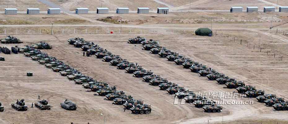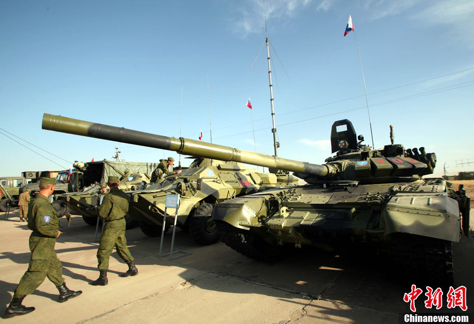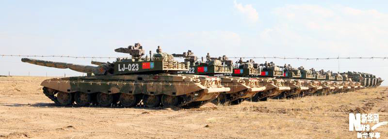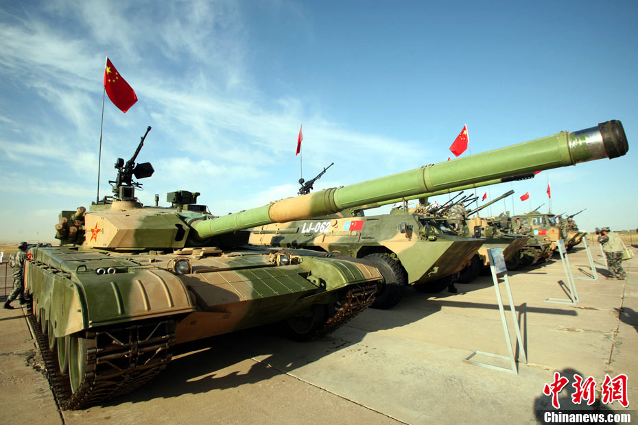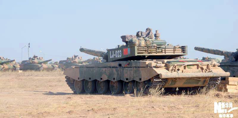 參加“和平使命-2010”上合組織聯(lián)合反恐軍事演習(xí)的中方參演裝備停放在哈薩克斯坦馬特布拉克訓(xùn)練場野戰(zhàn)兵營。圖為99式坦克。孫彥新 攝 圖片來源:新華網(wǎng)
