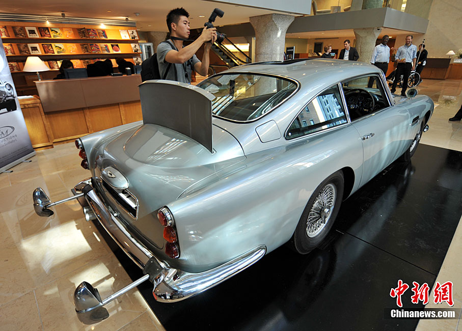 曾經(jīng)在“007”系列電影《金手指》和《雷霆萬鈞》中作為主人公詹姆斯·邦德座駕的阿斯頓·馬丁DB5跑車將于2010年10月27日在英國倫敦巴特西公園(Battersea Evolution)拍賣。圖為這款轎車正在美國紐約蘇富比拍賣行展出。