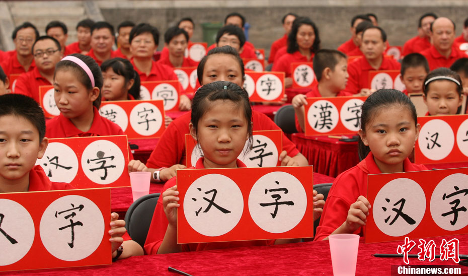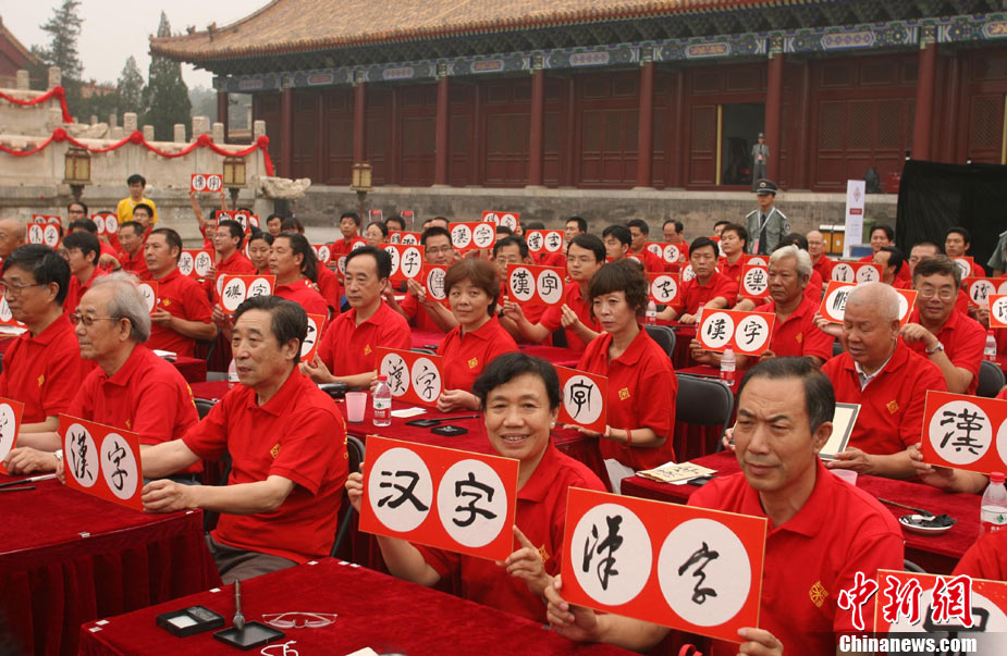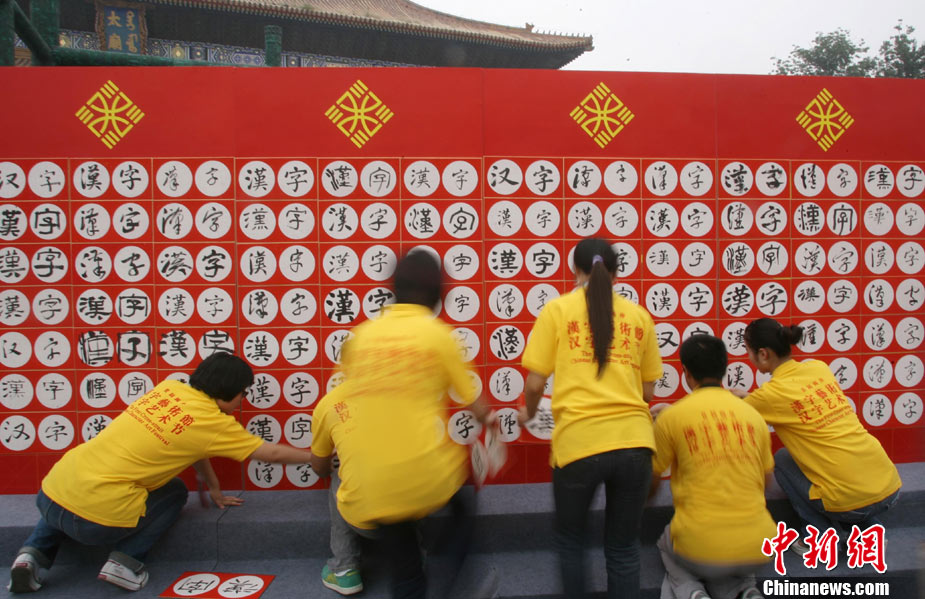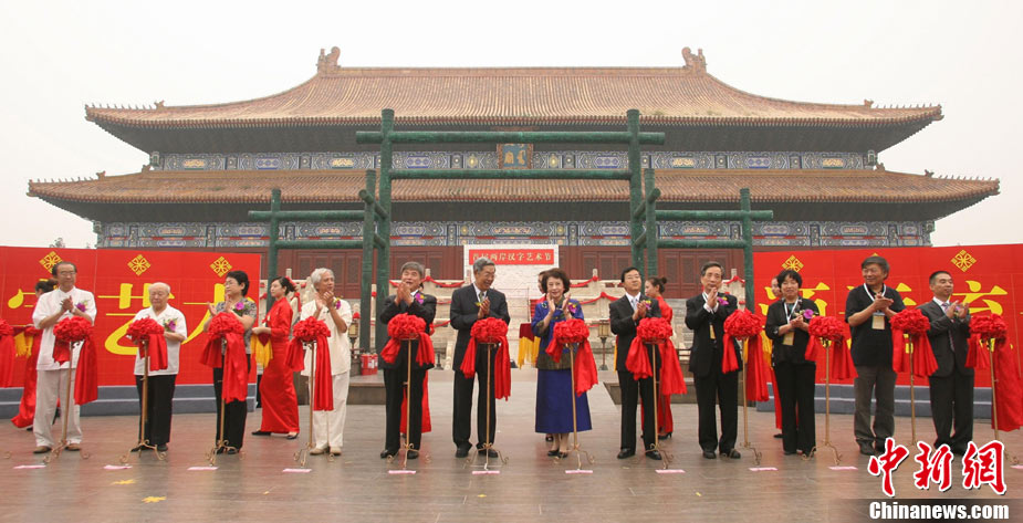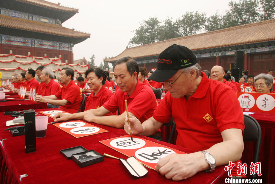 9月16日,北京兩百名書法愛好者在太廟前書寫各種字體的漢字,并共同完成“提筆、蘸墨、落筆、展卷”傳統(tǒng)程序。當日,首屆“兩岸漢字藝術節(jié)”在北京太廟開幕。本次藝術節(jié)由中國藝術研究院、中華文化聯(lián)誼會、臺灣文化總會、河南省安陽市政府聯(lián)合主辦,中國藝術研究推廣中心、臺灣中華新文化發(fā)展協(xié)會共同承辦。中新社發(fā) 蘇丹 攝
