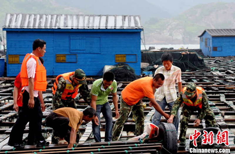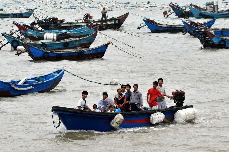 9月20日7時,今年第11號臺風“凡亞比”在福建省漳浦縣沿海登陸。 圖為9月19日,福建省連江縣海上養(yǎng)殖人員在轉(zhuǎn)移上岸。為防抗今年第11號超強臺風“凡亞比”來襲,福建省連日來展開人員梯次轉(zhuǎn)移。據(jù)福建省防汛辦統(tǒng)計,截至9月19日12時,福建全省共轉(zhuǎn)移海上作業(yè)人員18萬人,其中近3.1萬漁排作業(yè)人員和14.95萬漁船作業(yè)人員已全部安全轉(zhuǎn)移上岸,出海作業(yè)的5.5萬艘漁船也已全部進港避風。張國俊攝 圖片來源:新華網(wǎng)